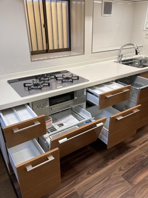 最新のシステムキッチンには、見た目の美しさだけではなく、食洗器や浄水器、お手入れ楽な換気フードなども組み込んだ、機能性にもこだわったシステムキッチンです。快適でお手入れ楽なキッチンライフのはじまりですね!