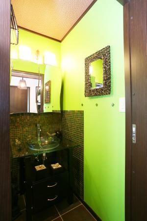 <ジェルコ デザインコンテスト関東甲信越大会 優秀賞>バリリゾートホテル、雑誌などからイメージを集め、ダークブラウンで建具や全ての木部や間仕切りを統一。天 井は網代風のクロスを使用撤去した壁や、高くなった建具と天井の間に竹を1本づつ丁寧に切って作った欄間は照明や建具とマッチしてプラン通りの仕上がりにな った。[After]ダークブラウンで建具や全ての木部や間仕切を統一。天井は網代風のクロスと付け梁がアクセントに。