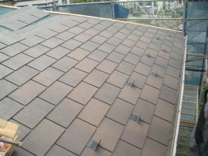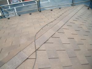 コロニアル屋根の塗装工事と言うことでしたが、吹き替え工事となりました。奥様のご希望で、ケミュー㈱ スペリアルグランデグラッサのグラッサ・ファジーブラウンを選択しました。