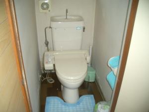 昔の洋式便器から、節水型の洋式便器への交換です。排水の穴の位置が違いますが、リモデルタイプの便器を選びますと、既存の床を壊さずに入れ替えが可能です。スマートに見えますが、ウォシュレットも付いています。壁にリモコンが見えます。夜は足元を照らす照明もありますので、トイレの照明を付けなくても用は足ります。逆に目が覚めずに評判も良いです。