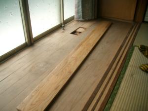 穴が開いてしまいました。全体を、唐松での張り替えです。