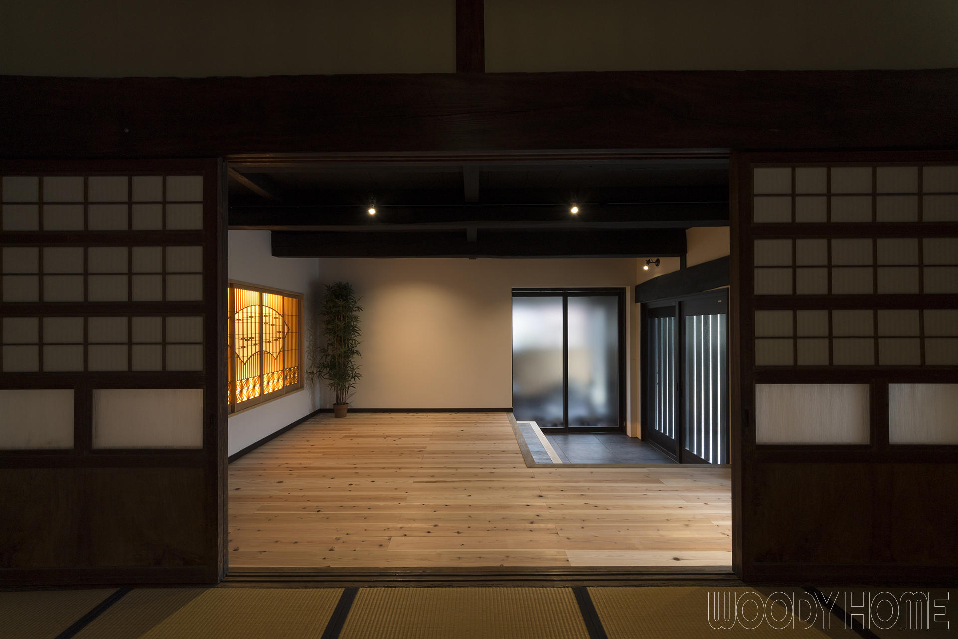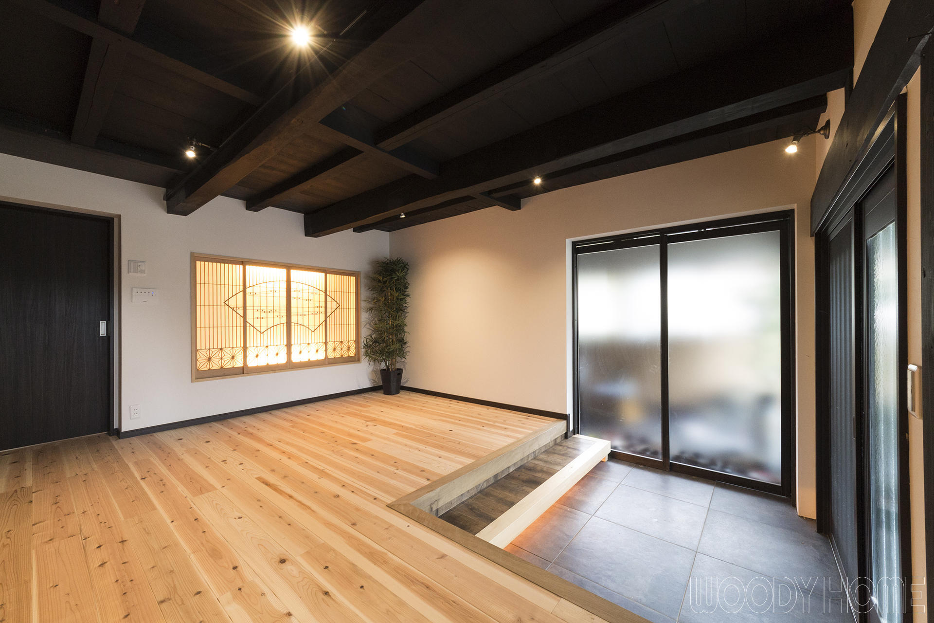 元々和室にあった書院を玄関に移設し、照明を仕込みました。優しく皆をお迎えしてくれます。