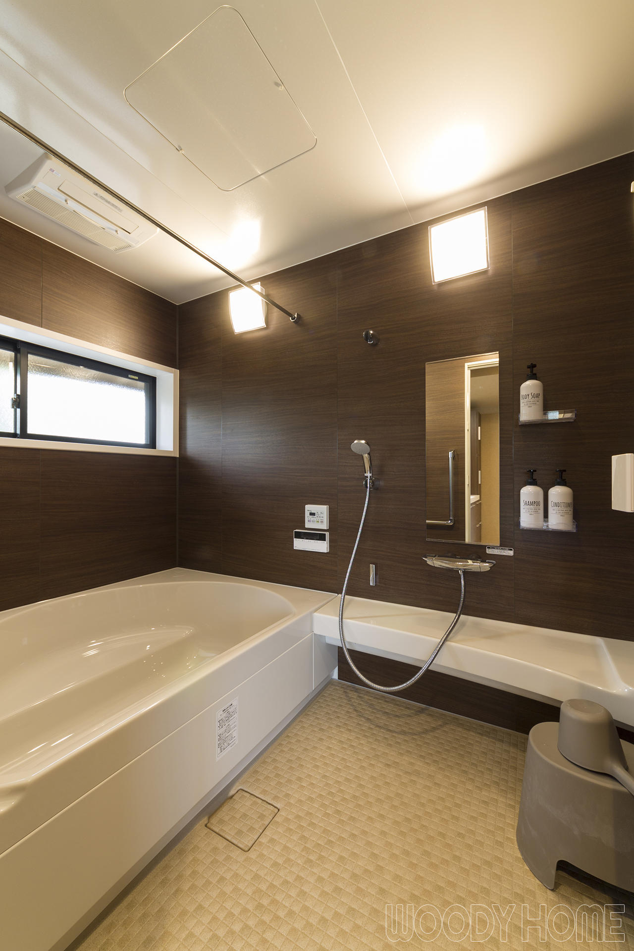 ユニットバスはLIXILのアライズ、1622のゆったりサイズ。浴槽内に腰掛けがあるので、お年寄りや小さなお子様が腰かけて入浴できますね。