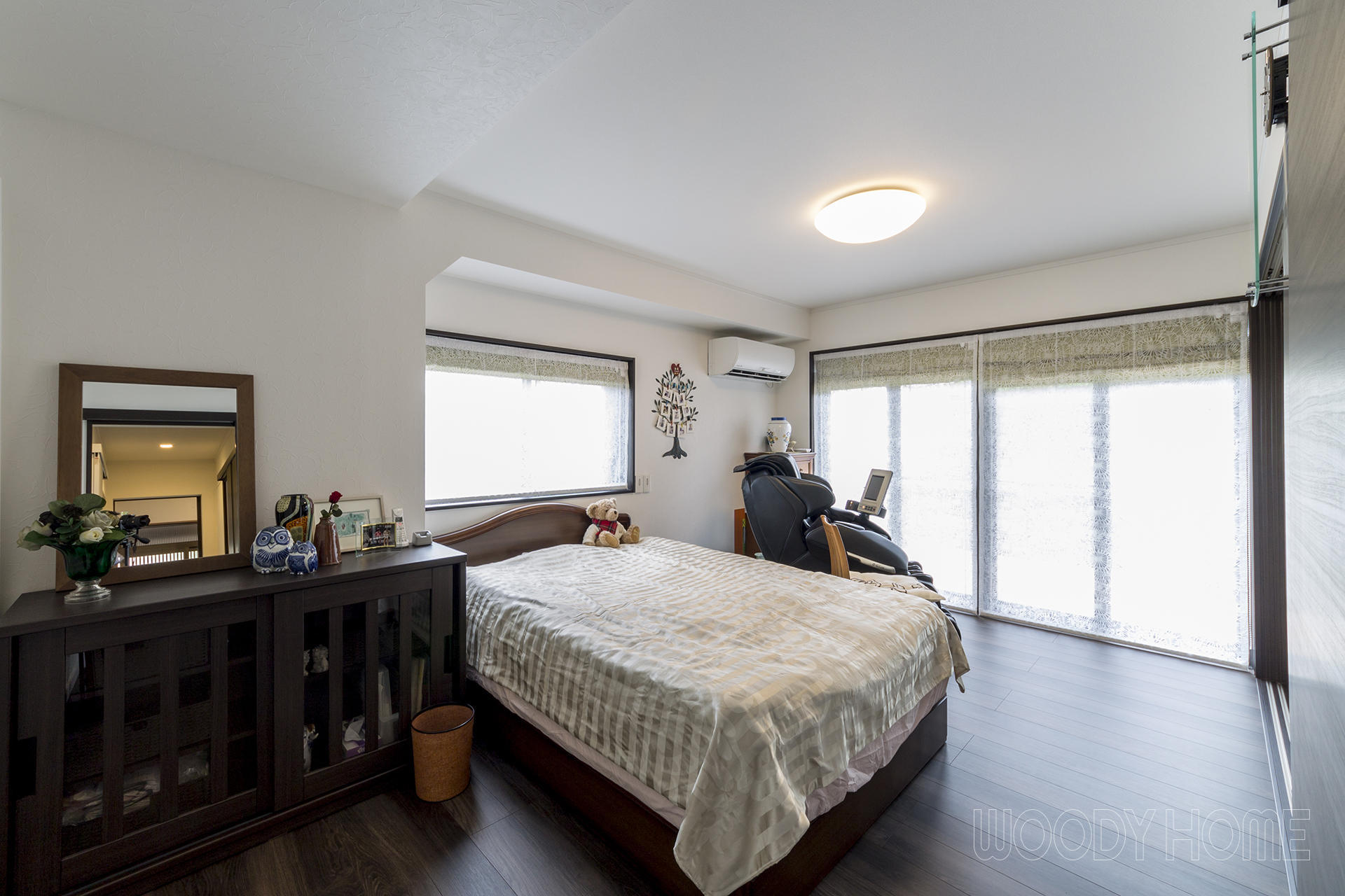 真壁を大壁に改修、暗かった和室が明るい洋間(寝室)になりました。