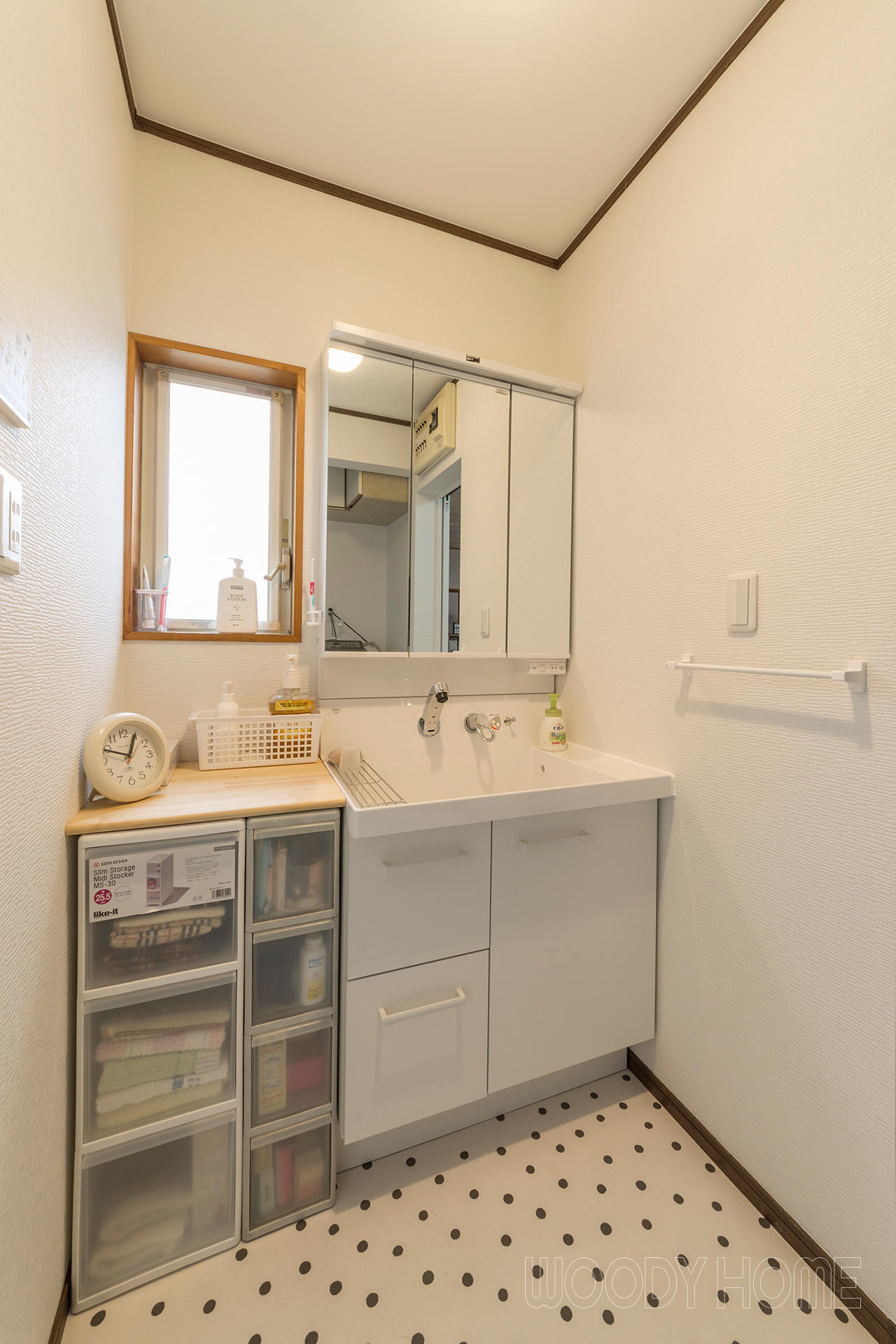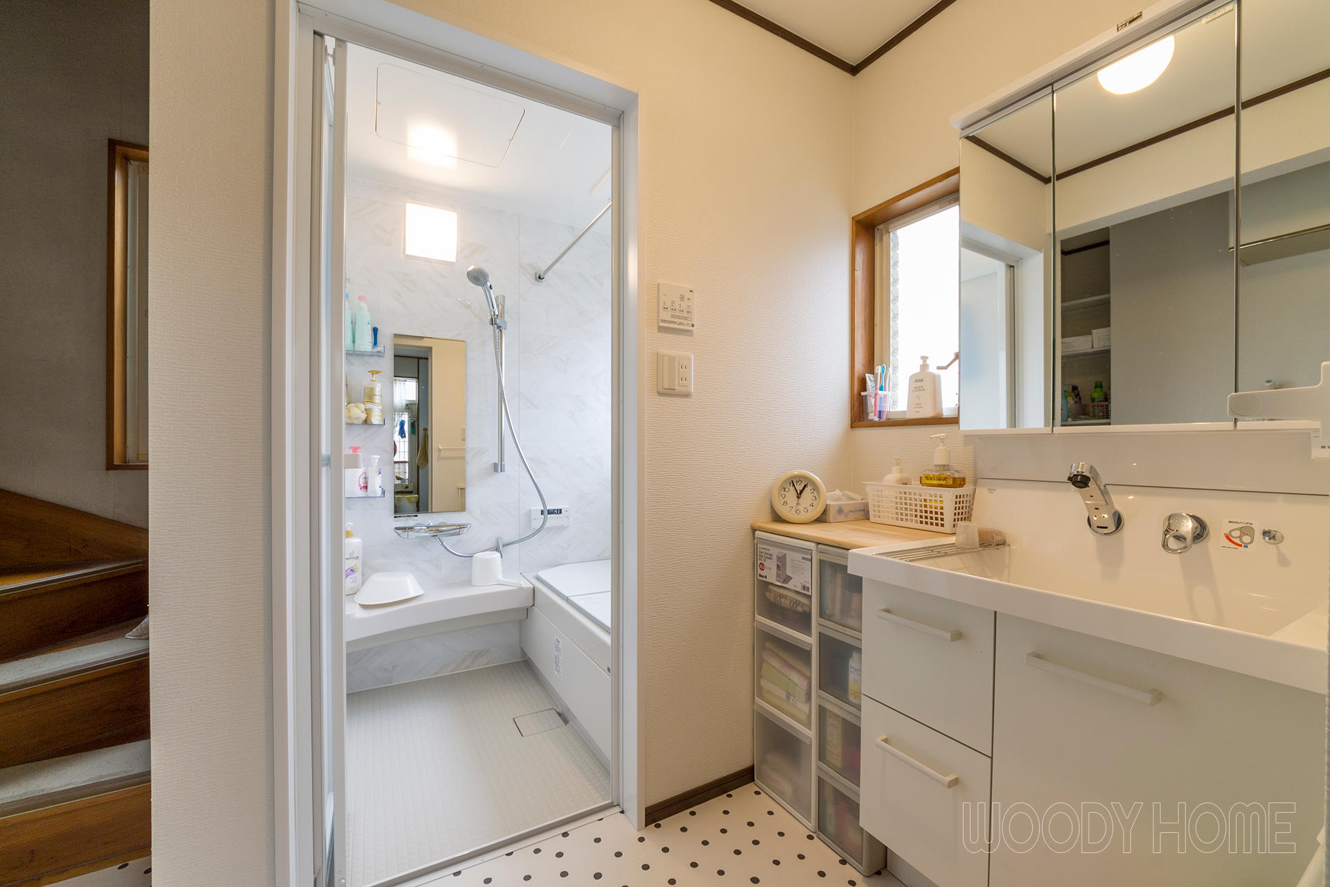 2階からの動線で不自由を感じられていた洗面脱衣室と浴室ですが、リフォーム後は2階から階段で降りてすぐ洗面脱衣室と浴室があります。洗面化粧台をLIXILの「ピアラ」に入れ替えました。