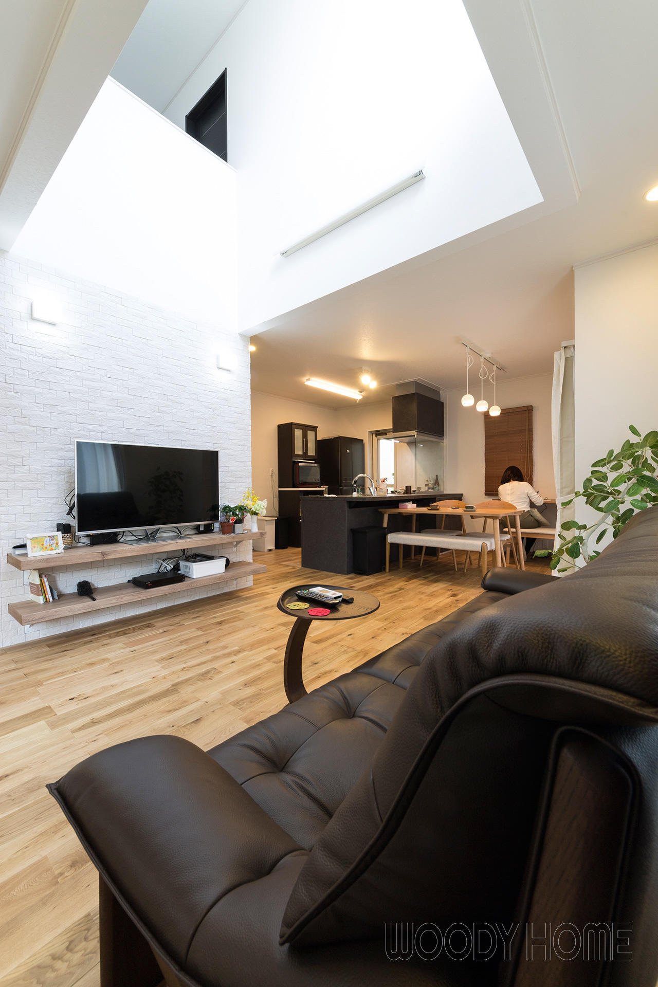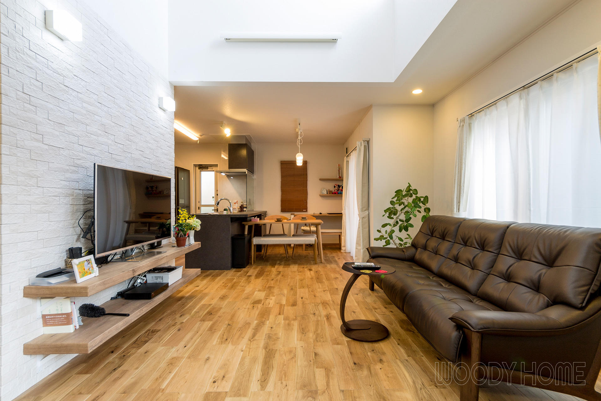 床はLDK続きの無垢フローリング、壁は漆喰ぬりで綺麗にリフォームしました。