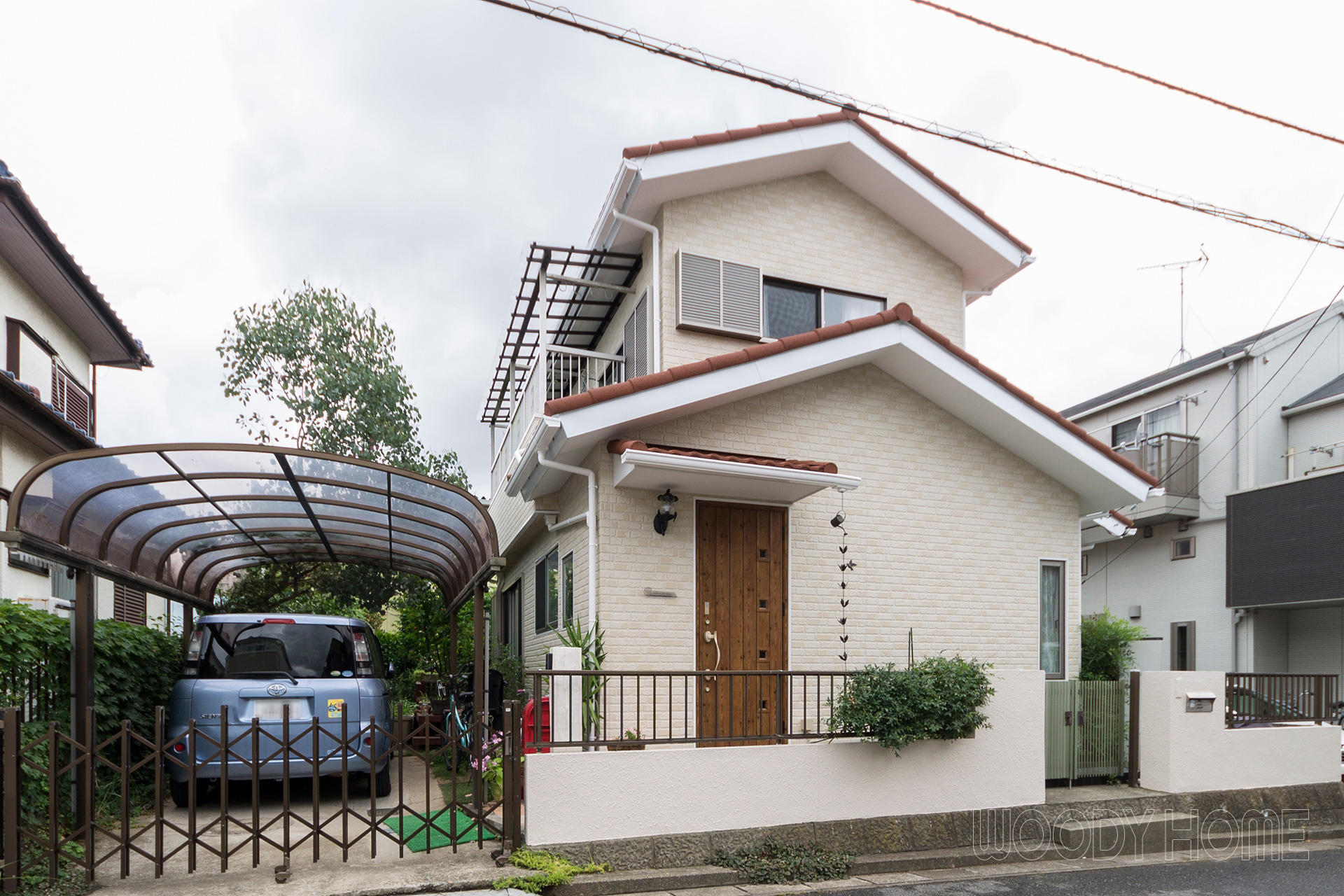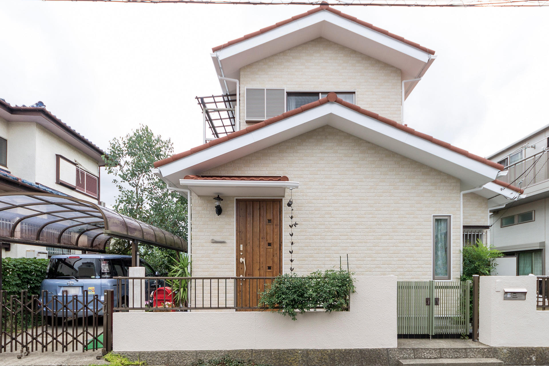 モルタル壁に下地を打ちサイディングを重ね貼り。奥様はぬりかべ風がご希望でしたが、ご主人のたっての希望でタイル調に。奥様のご希望も併せて、この柄のサイディングにしました。