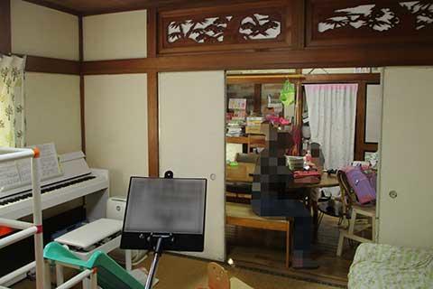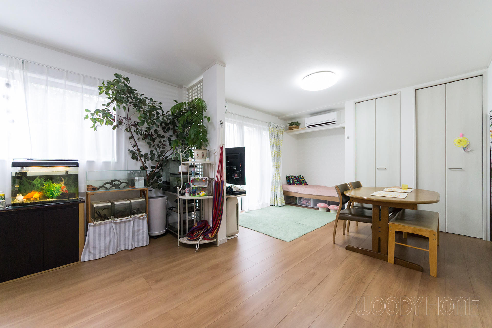 元々和室の部分を隣の和室を含めてLDへ。柱壁が一部耐震の上で取れないので、パンチ君を使用することにより壁よりの空間を広くとることができました。また、パンチ君にはフックを掛けて物を下げたりできて意外と便利。奥の和室の収納部分はクローゼットに変更。