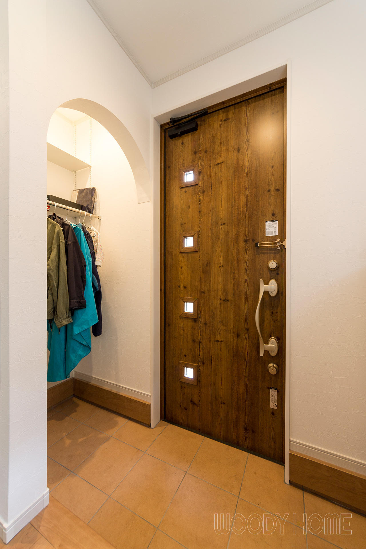 玄関土間にはアーチ形の開口がアクセントになるウォークインシューズクロークを造作。以前の玄関より駐車スペースに近い位置にWICができたので、アウトドア用品等が仕舞いやすく便利になりました。