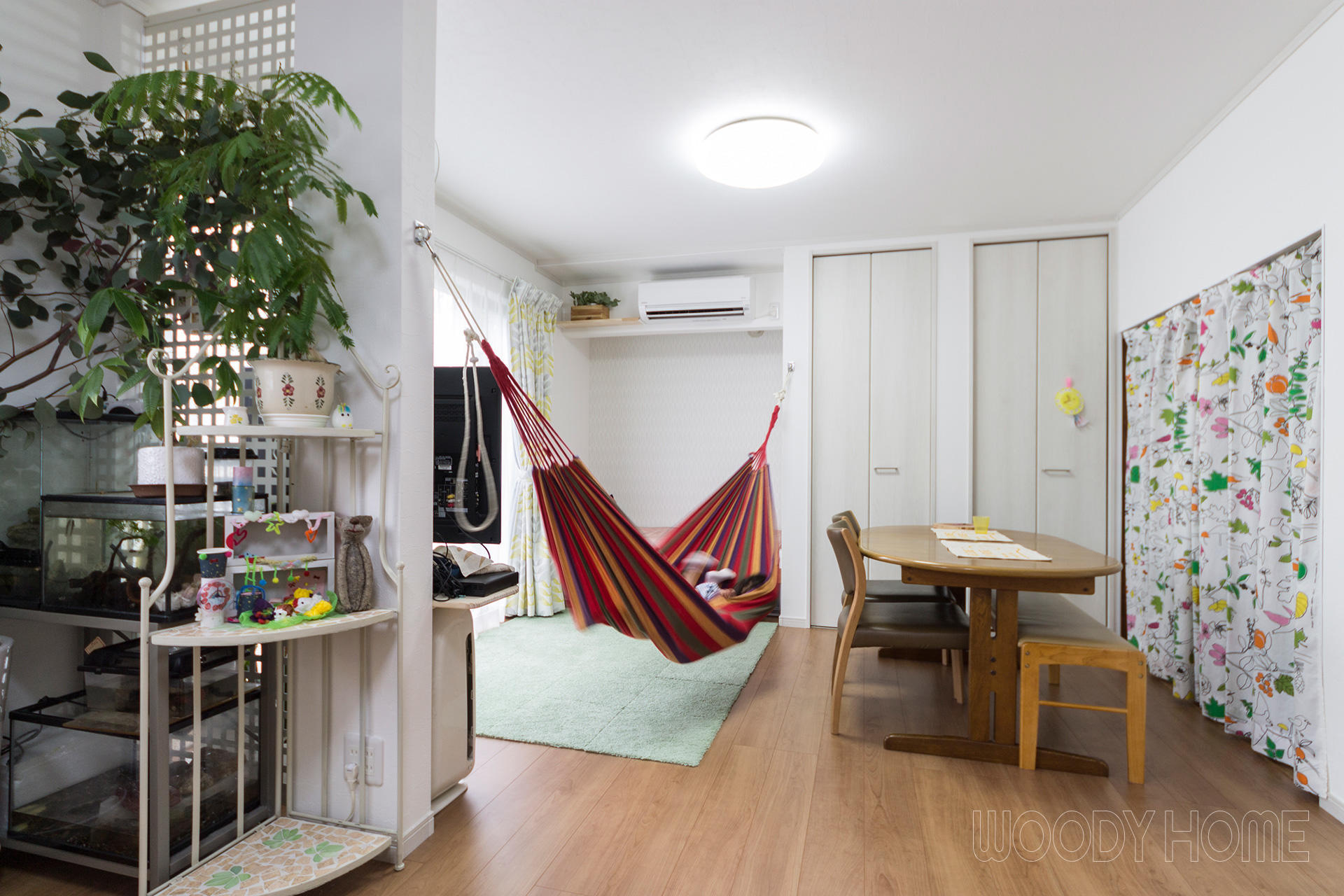 ハンモックでくつろいだり、お子様が遊んだり。補強をちゃんとすればこそです。