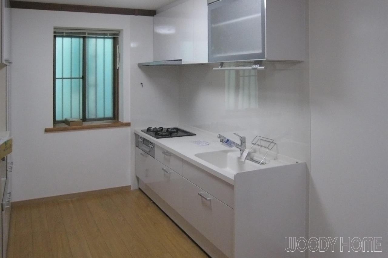 内装をやりかえ入れ替えたシステムキッチンはLIXILの「アレスタ」。シンプルで汚れが付きにくくスタイリッシュで掃除が楽になるキッチンです。
