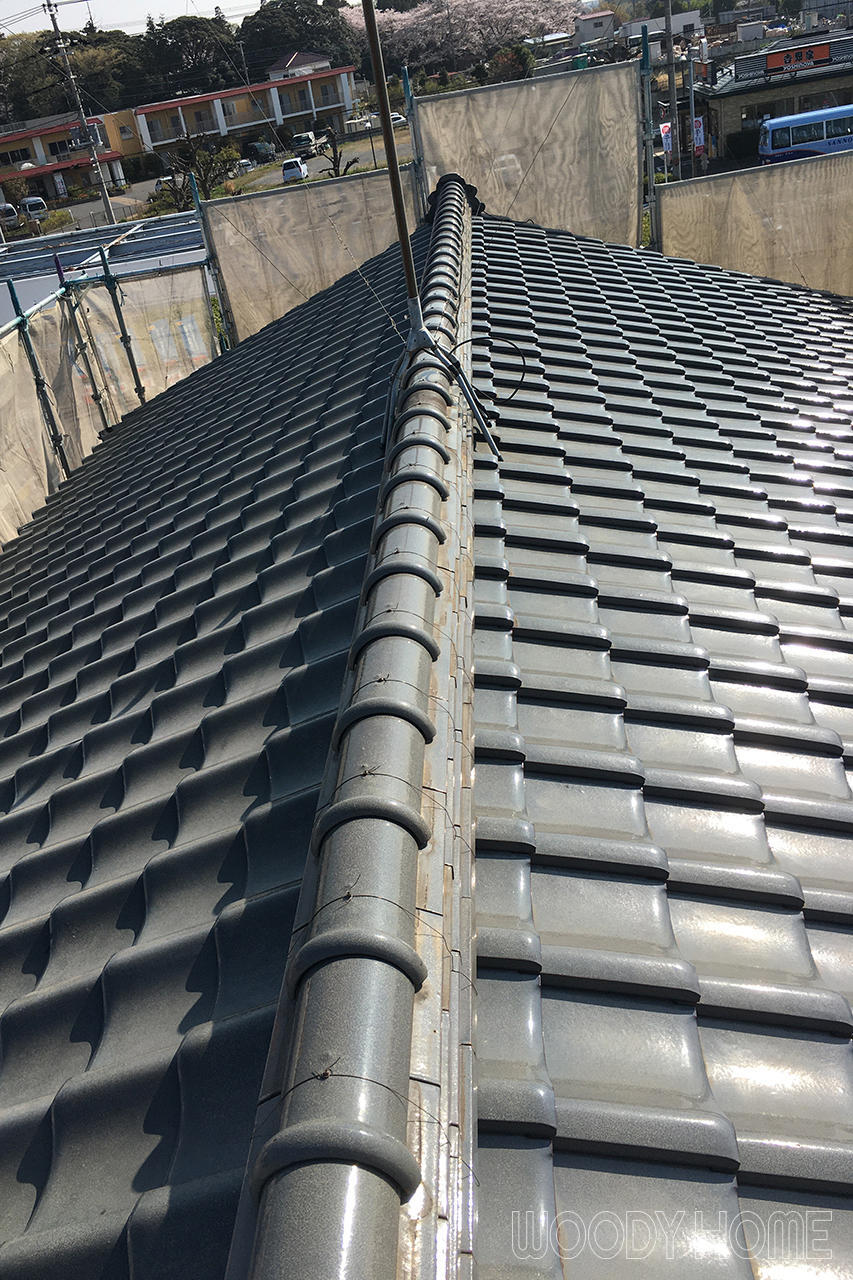 2019年の台風被害に遭われた木造戸建て住宅の瓦の積み直しと、足場を立てたタイミングで傷んだ外壁塗装の塗り替えリフォームです。
