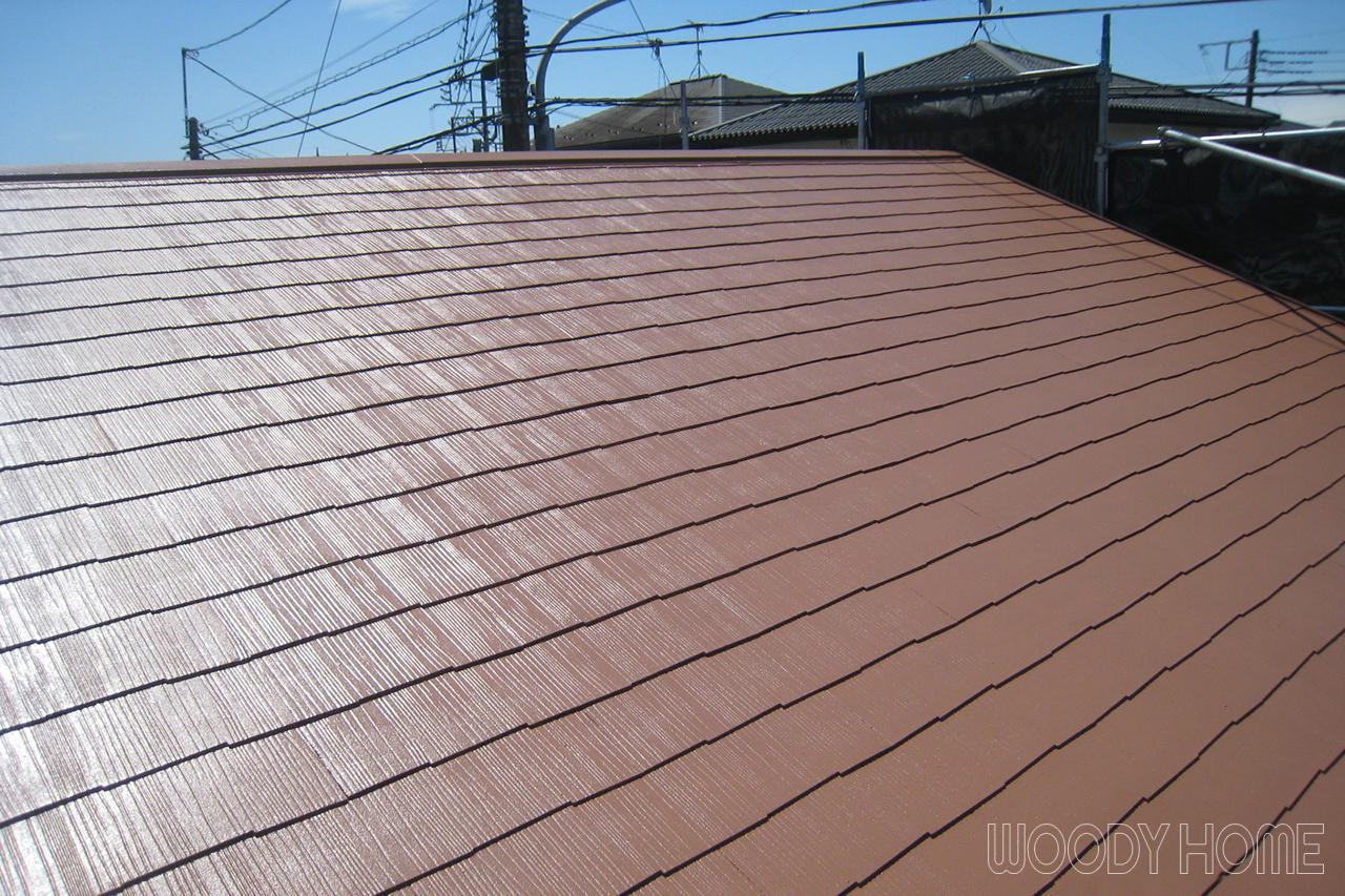 塗装前は色褪せ傷みの目立っていた屋根ですが、光沢感のあるきれいな屋根に仕上がりました。