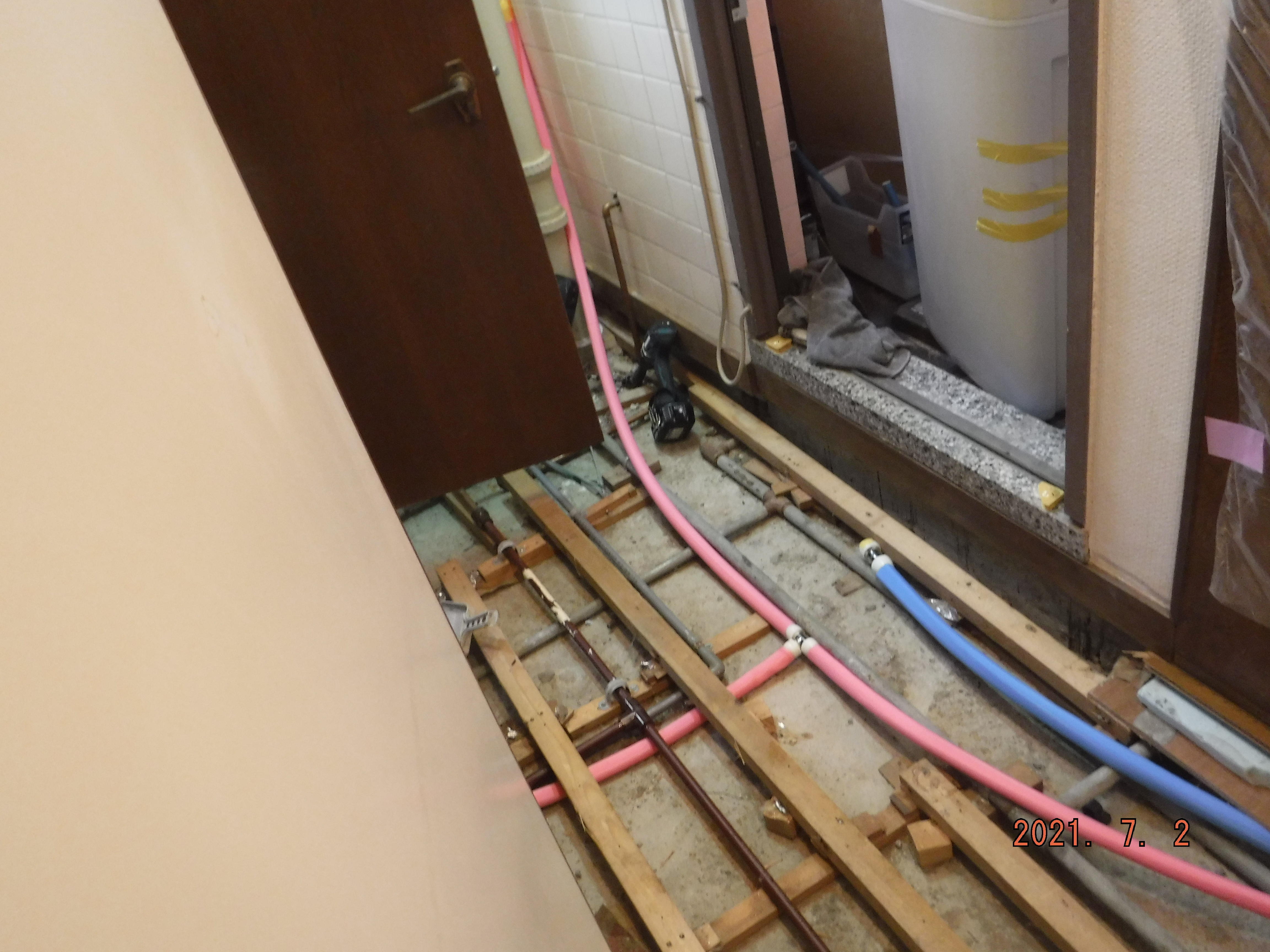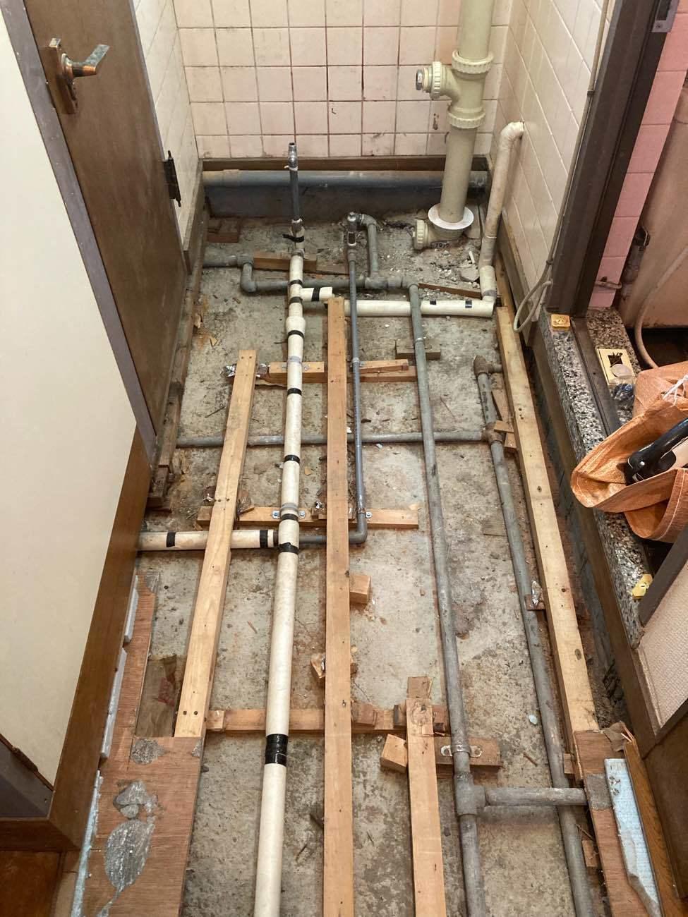 団地の給排水入れ替え工事です。 壁貫通給湯器、浴槽も交換です。 メーターから先の給水管を全て新しく致しました。 長年使っていた管を新しく交換ですので、これでまた長く使って頂けます。 ありがとうございました。