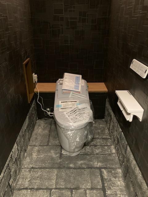 トイレに行くのが楽しみになりそうな空間に完成しました。 店舗で改修工事をご希望であれば、是非、参考にしてください。 (ビニール取り忘れです)