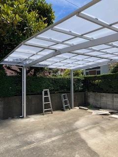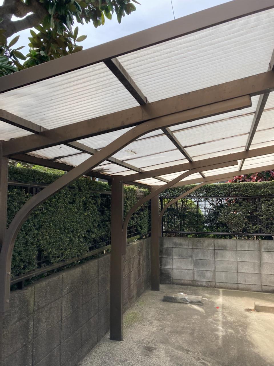 カーポート屋根が劣化しコケ等が付着していましたが、ポリカーボネート屋根に交換をさせて頂きました。この商品は耐風圧にも優れた性能を持ち、安心してこれからの台風シーズンに備えられます。