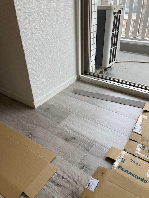 マンション床の上張りフローリング工事になります。元々のフローリングの下には温水式の床暖房システムが設置されていました。オーナー様のご趣味で、白を基調としたお部屋造りをしました。