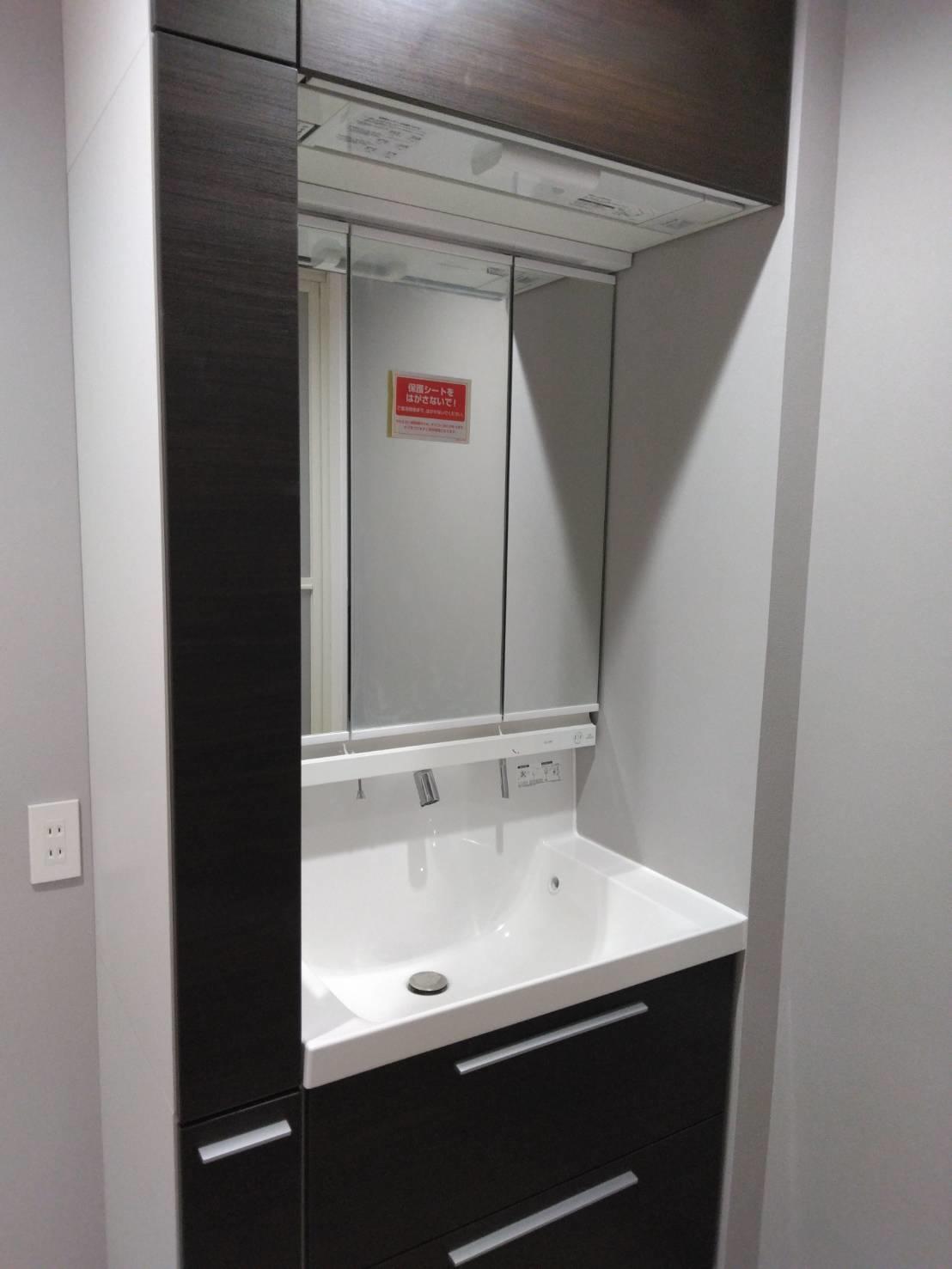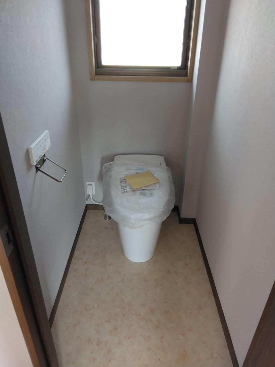 広々としたトイレ空間を求め、タンクレスをご希望されました。 クロス、クッションフロアを含む、トイレ空間を一新されました。 また、ホテル仕様の雰囲気な洗面台に大変、ご満足をいただいております。