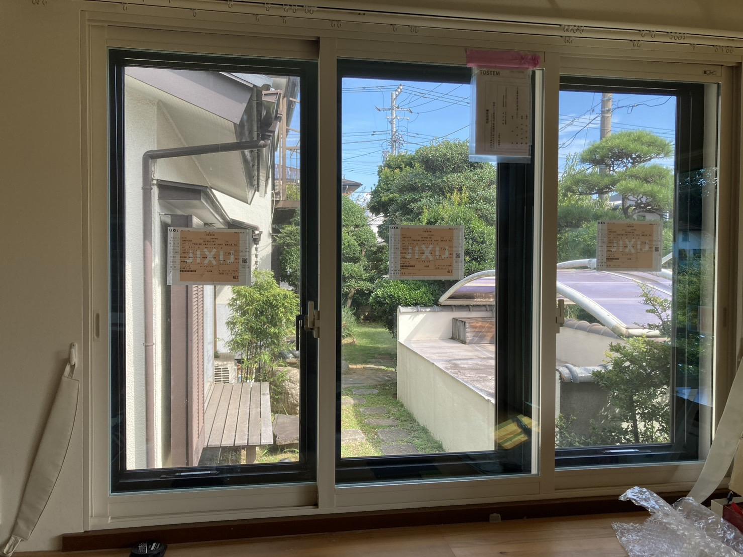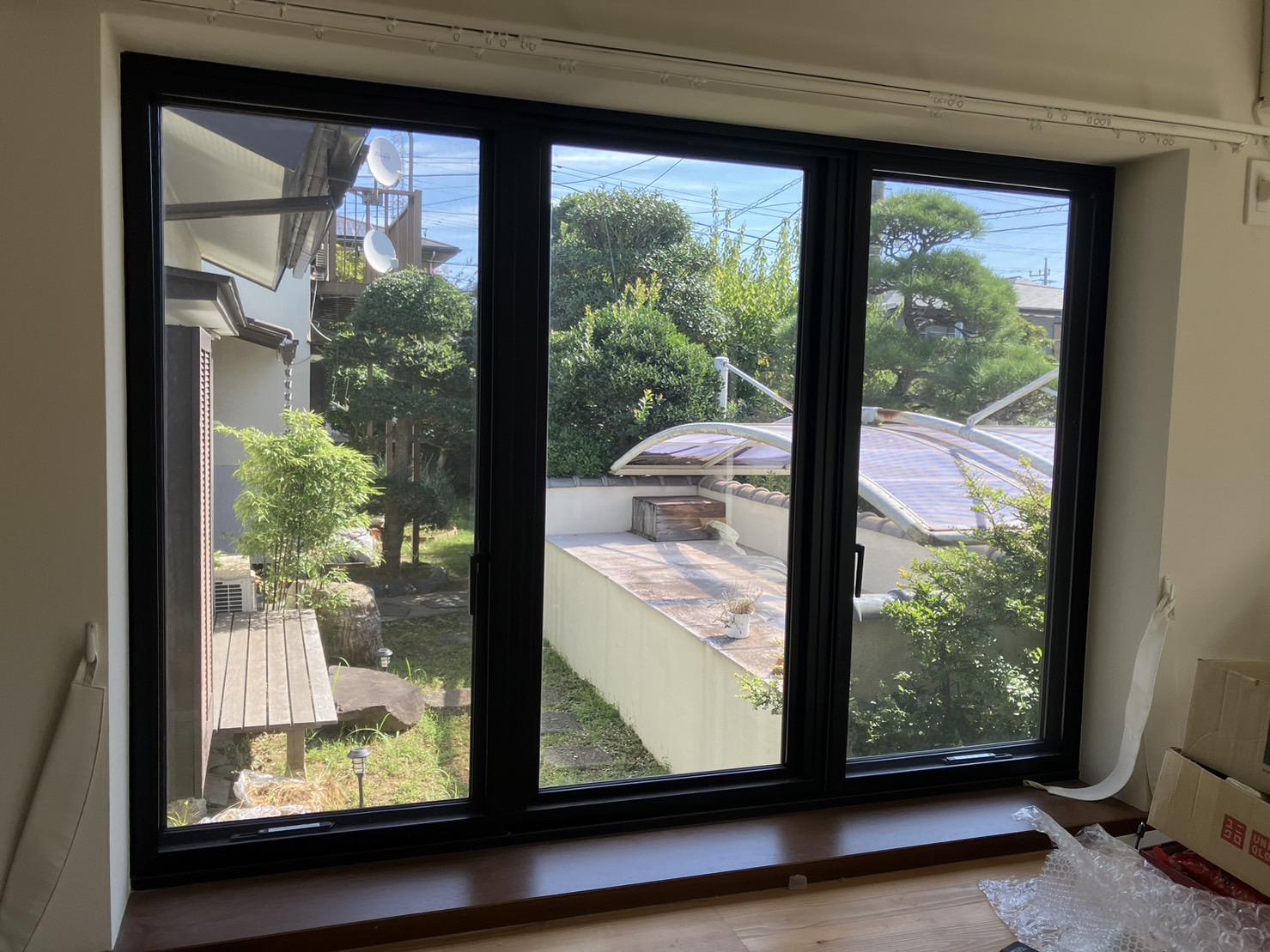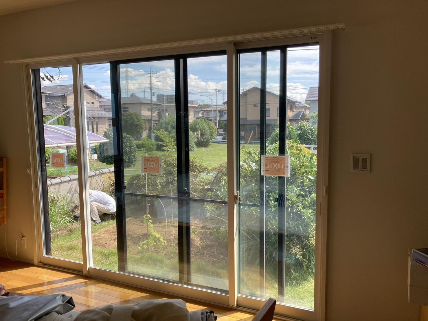 元々変則的な3枚建のサッシにも合わせてインプラスを取り付けることができます。 夏の暑さ、冬の寒さが年々厳しくなり、光熱費も高騰していますので冷暖房効果がかなり良くなります。
