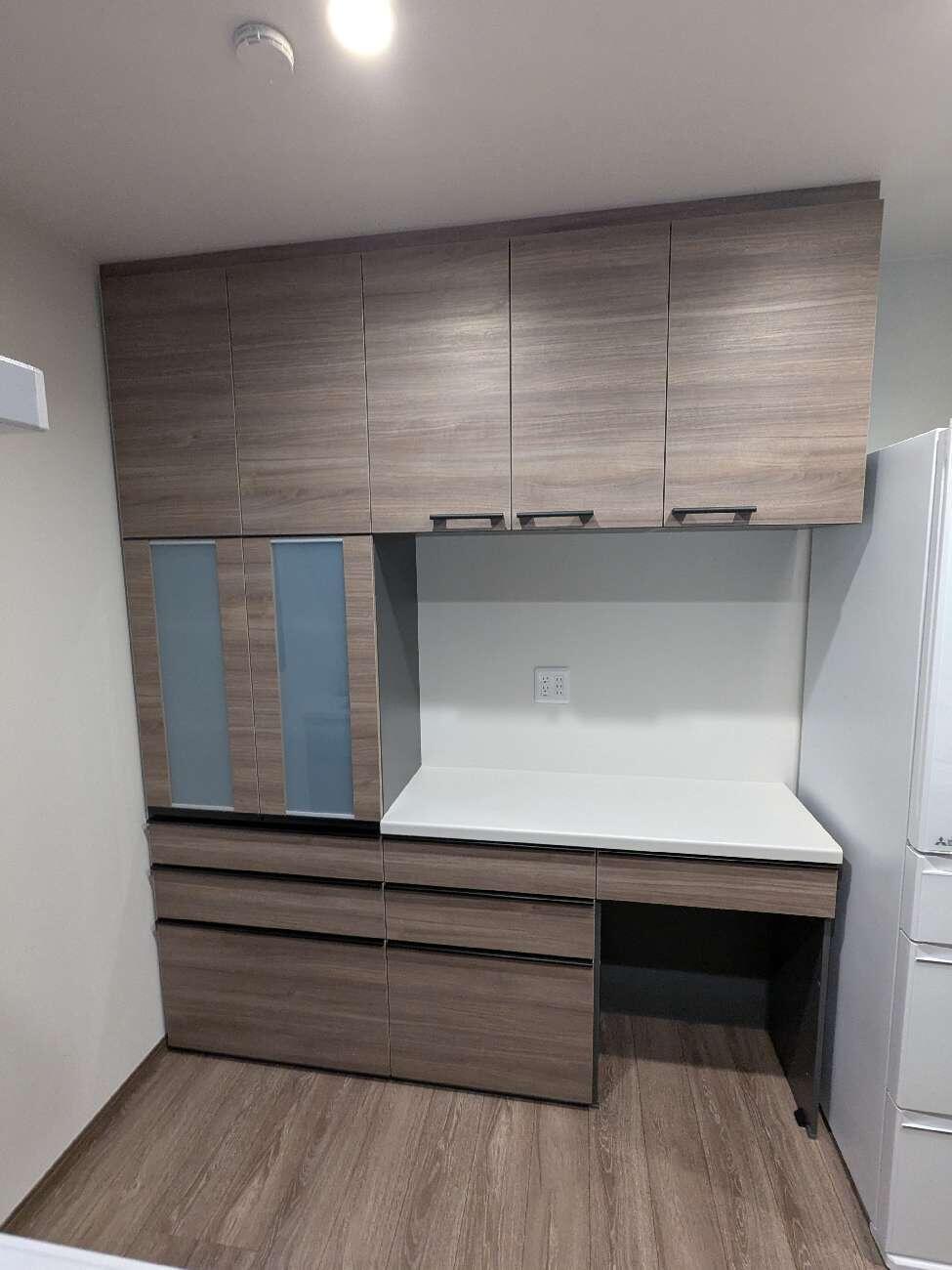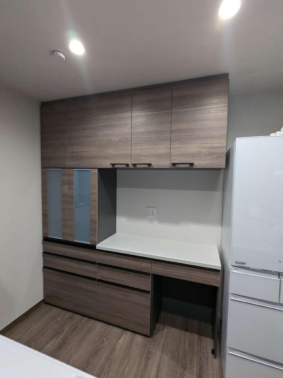 新居へご入居されて1週間、お手持ちの食器棚がなくまだ段ボールも片付かない状況という事でショールームへご来館され、なるべく早めの設置をご希望されておりました。 すでにショールームでプランを作成されておりましたので、スムーズにお話がすすみました。