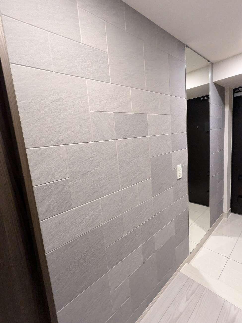 ちょうど、玄関からリビングまでの廊下の片側一面にエコカラットを施工しましたので雰囲気はガラッと変わりました。