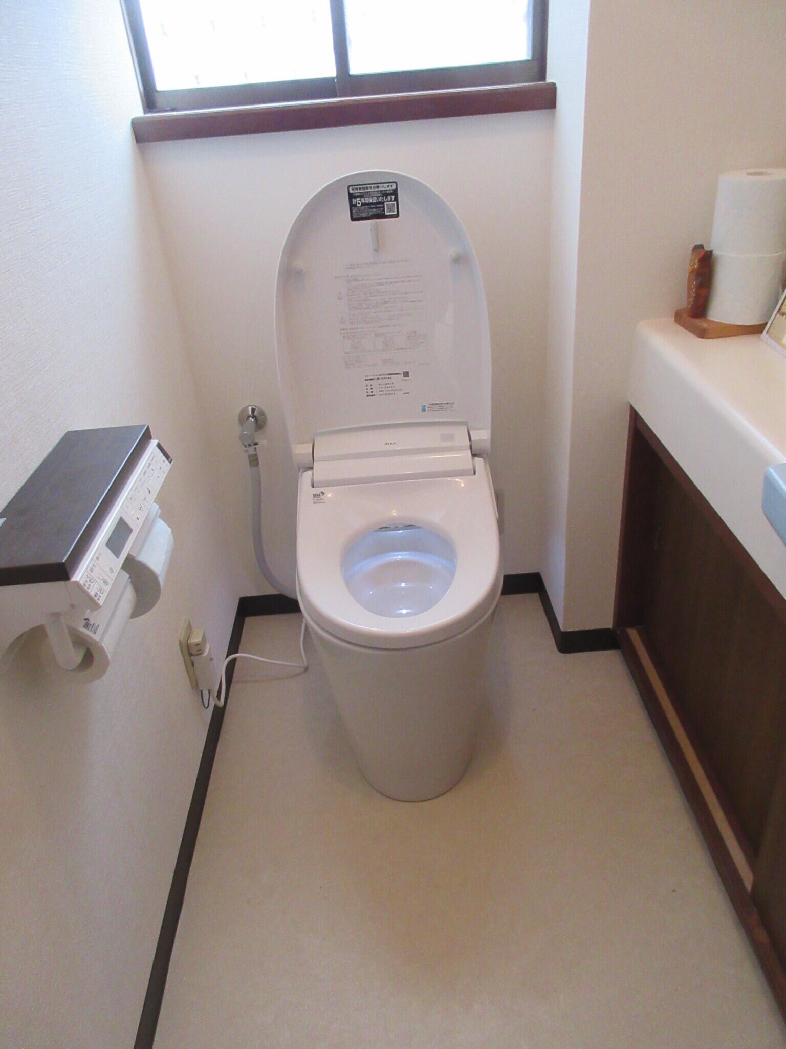 今回水廻りのリフォームにあたりトイレはリクシルのサティスSをお選びいただきました。サティスSはタンクレスのトイレの中で最もコンパクトサイズなので、トイレの空間が広がります。