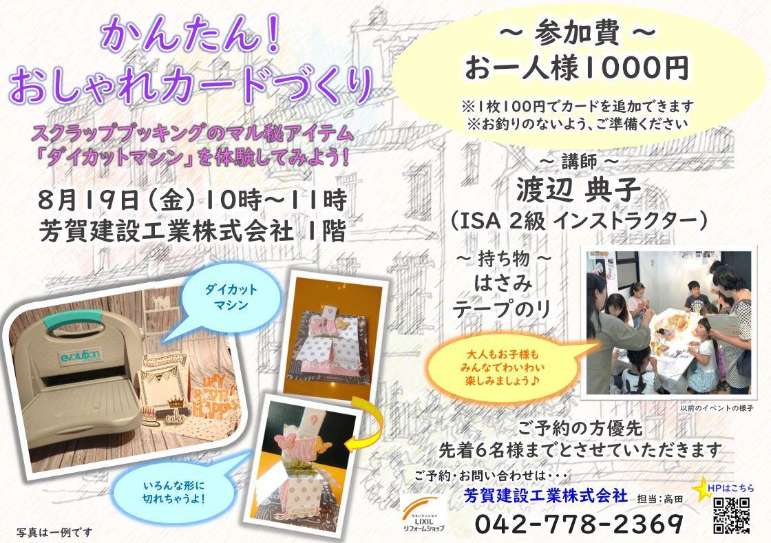 ☆8月19日(金)「かんたん!おしゃれカードづくり」予約受付中☆