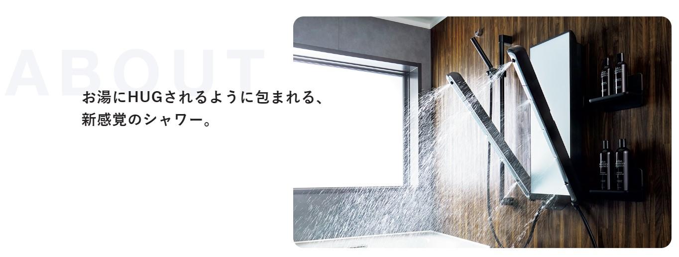 【ボディハグシャワー】、左右のアームに配置された10個のノズルで全身を心地よく温めます!