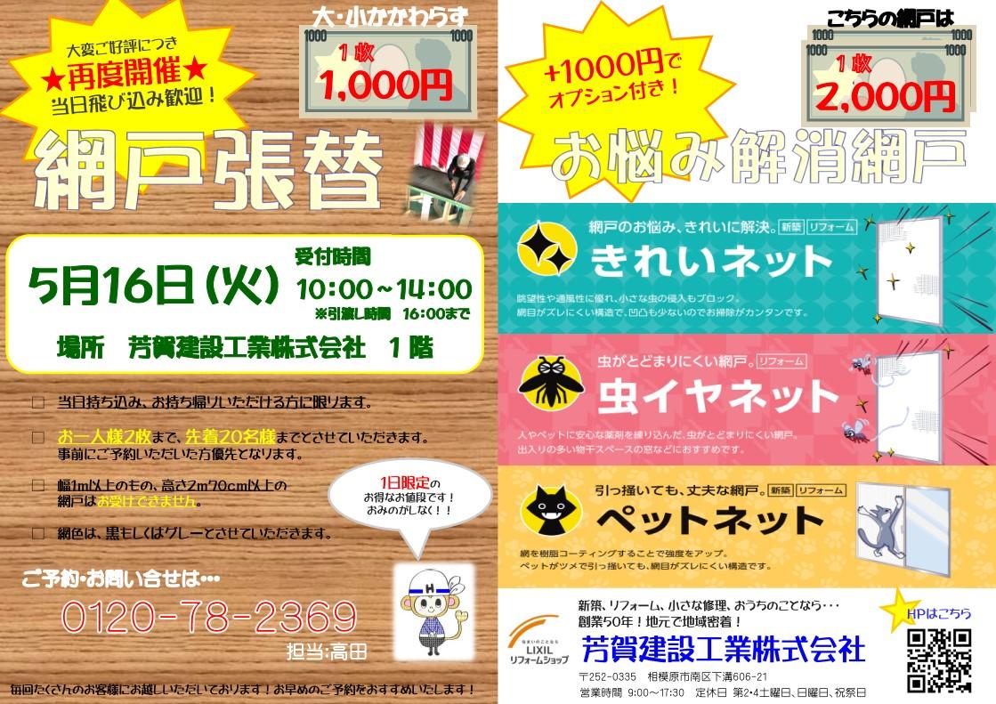 これから窓を開けることが多くなる季節、きれいな網戸で気持ち良い風を取り入れませんか?