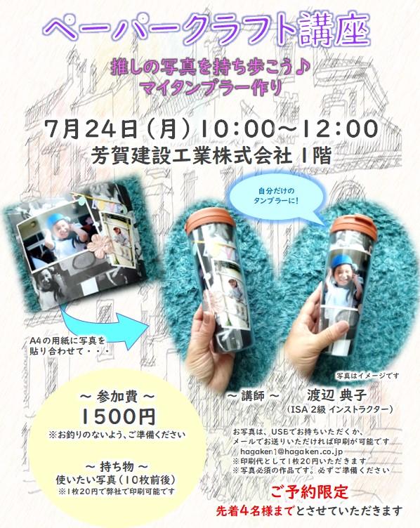 ★7/24(月)10:00~【ペーパークラフト講座】★