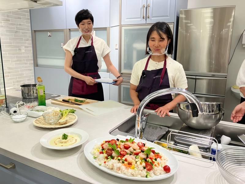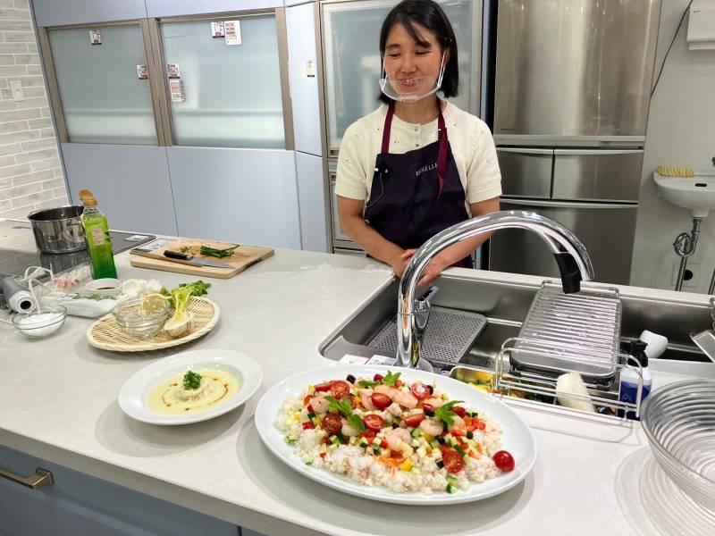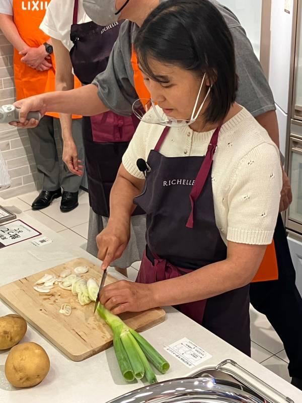 実際にLIXILキッチン【リシェル】を使って、目の前でお料理してくださいました!