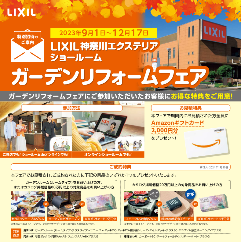 LIXIL神奈川エクステリアショールームの「ガーデンリフォームフェア」のご案内です!
