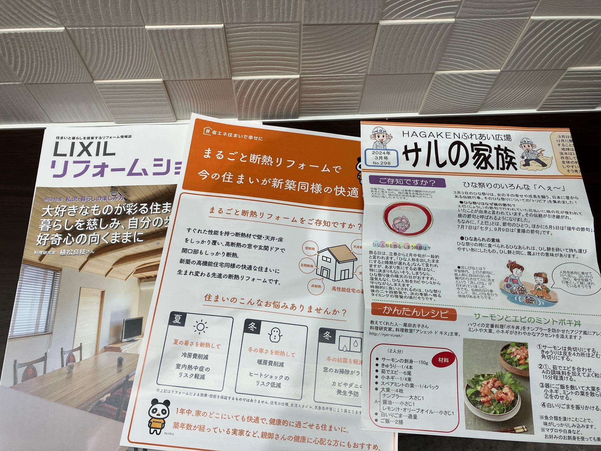 今月は、LIXILの情報誌と、断熱リフォームのチラシもご一緒に♪