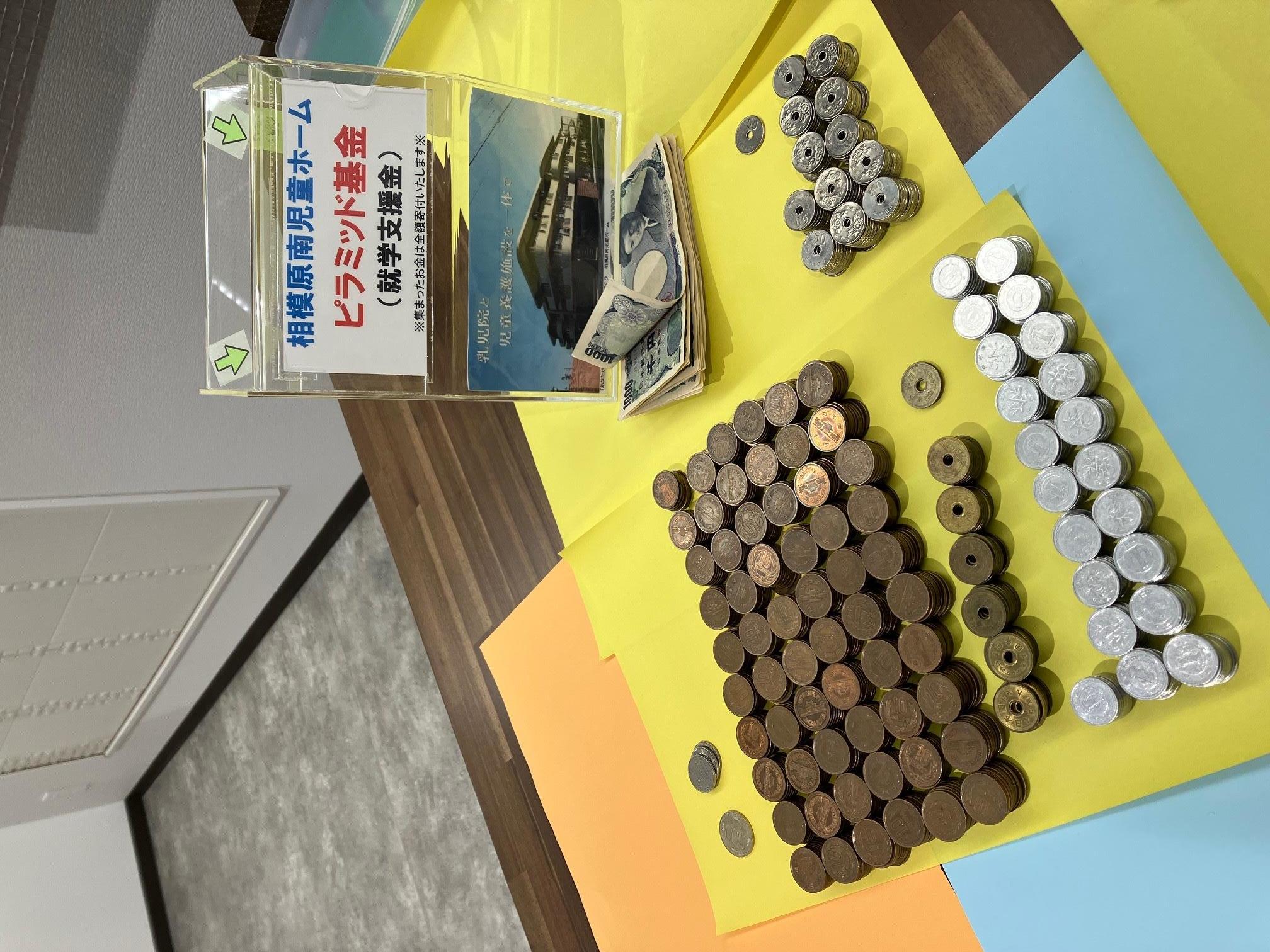 寄付BOXは普段は弊社1階に設置してあり、集まった寄付金を相模原南児童ホームにお届けしています。