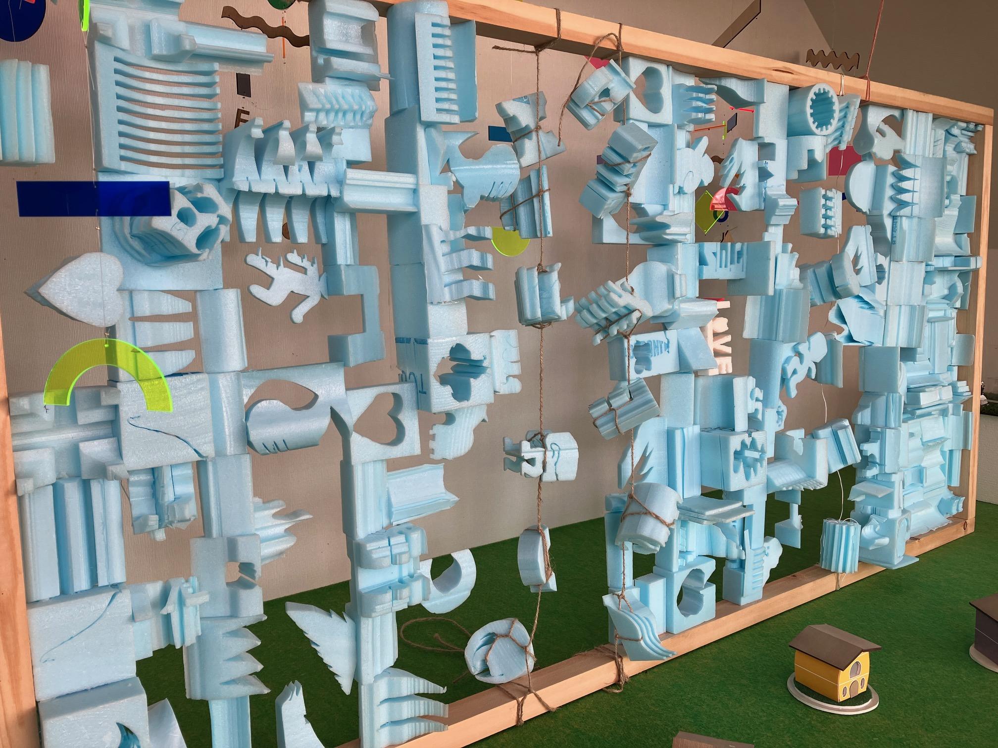 いろいろな形があわさり、見ているのが楽しい作品です!