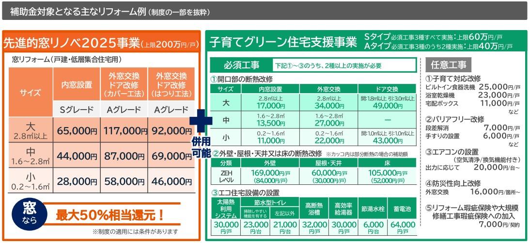 先進的窓リノベ事業 子育てグリーン住宅支援事業は併用が可能ですが、