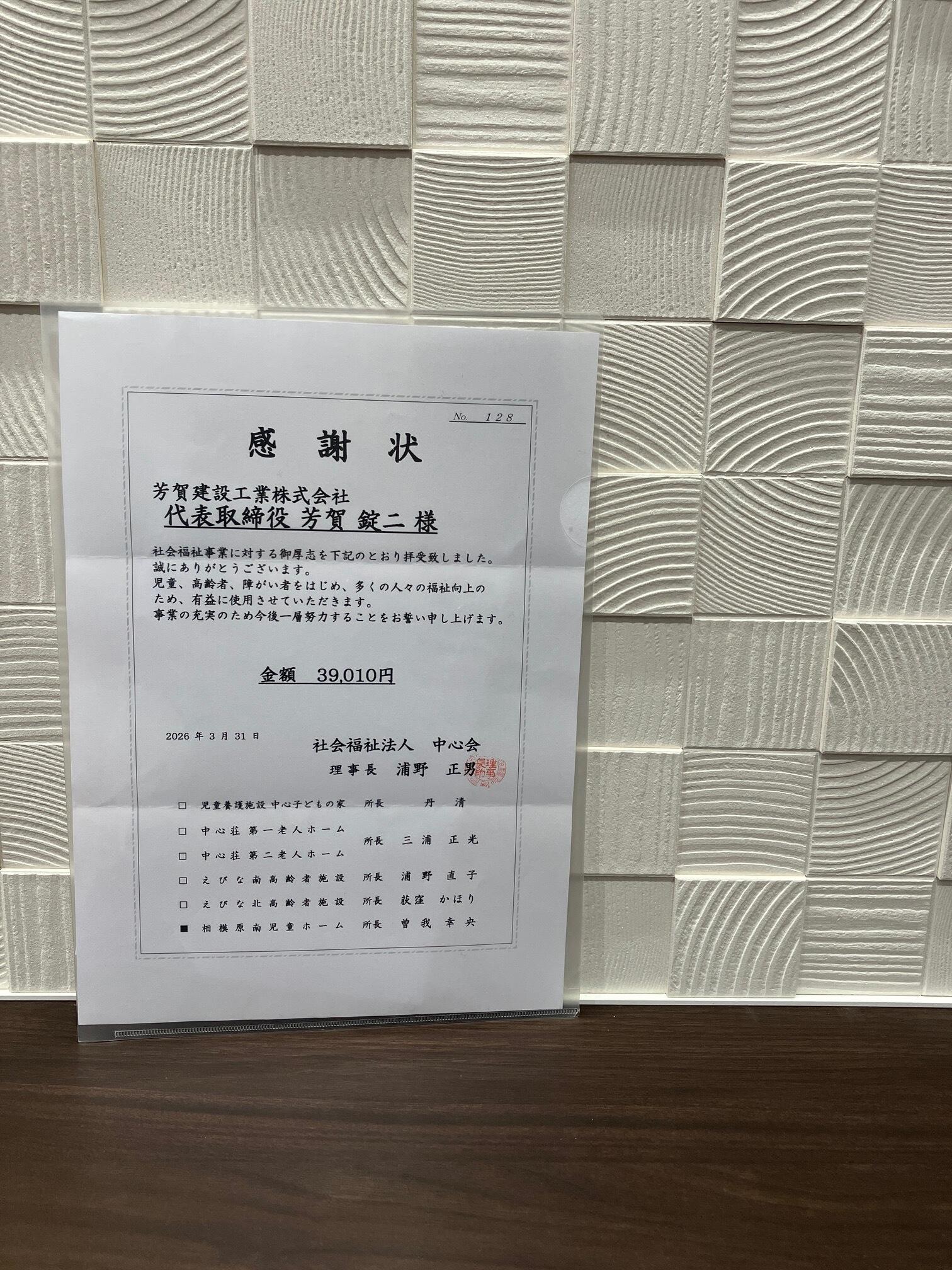 2018年より続けている、相模原南児童ホーム様への募金。