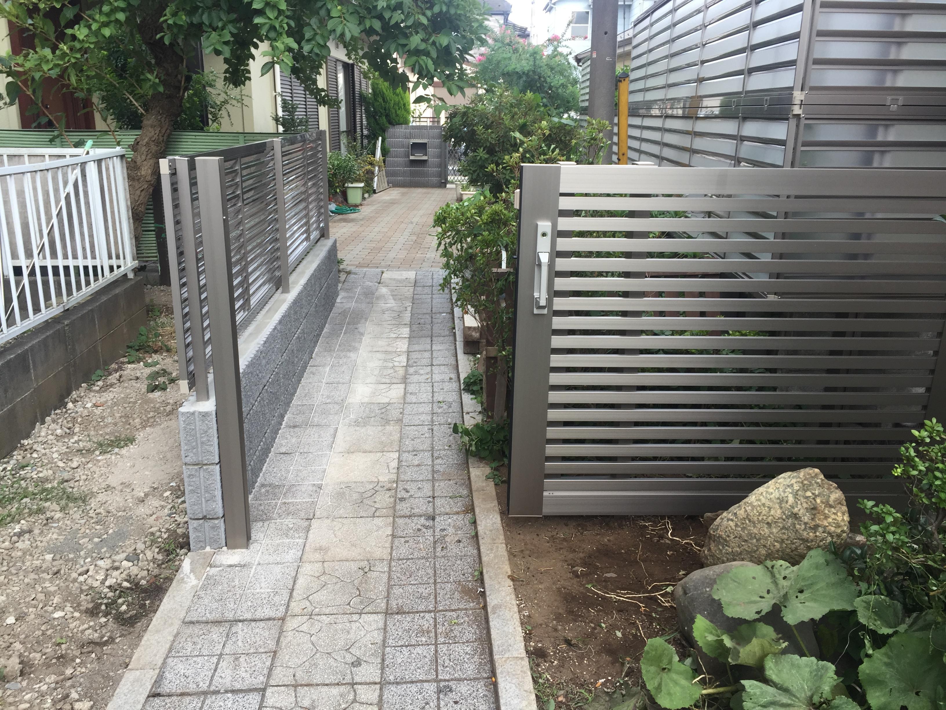 玄関までのアプローチの工事と目隠しフェンスの取付