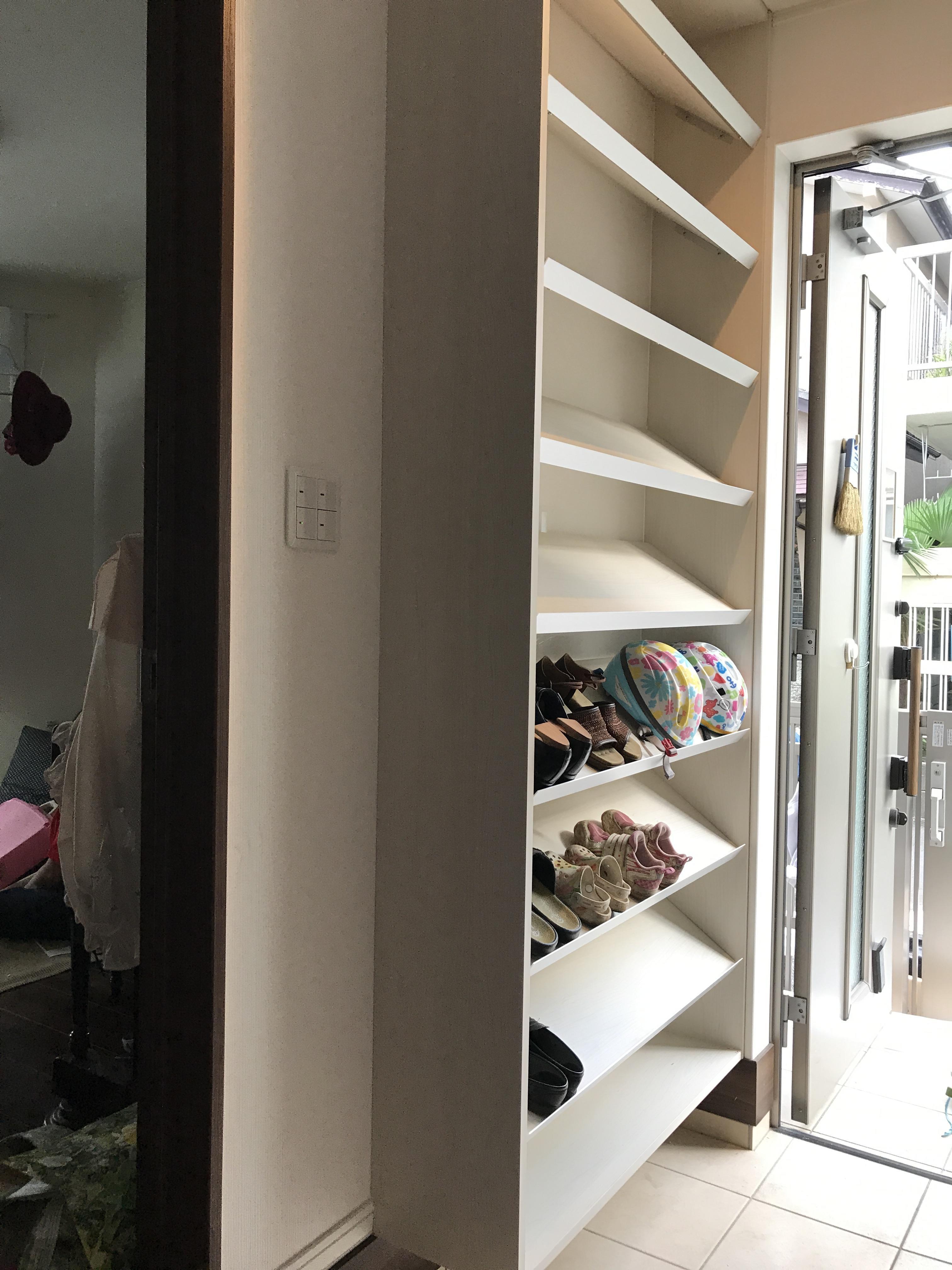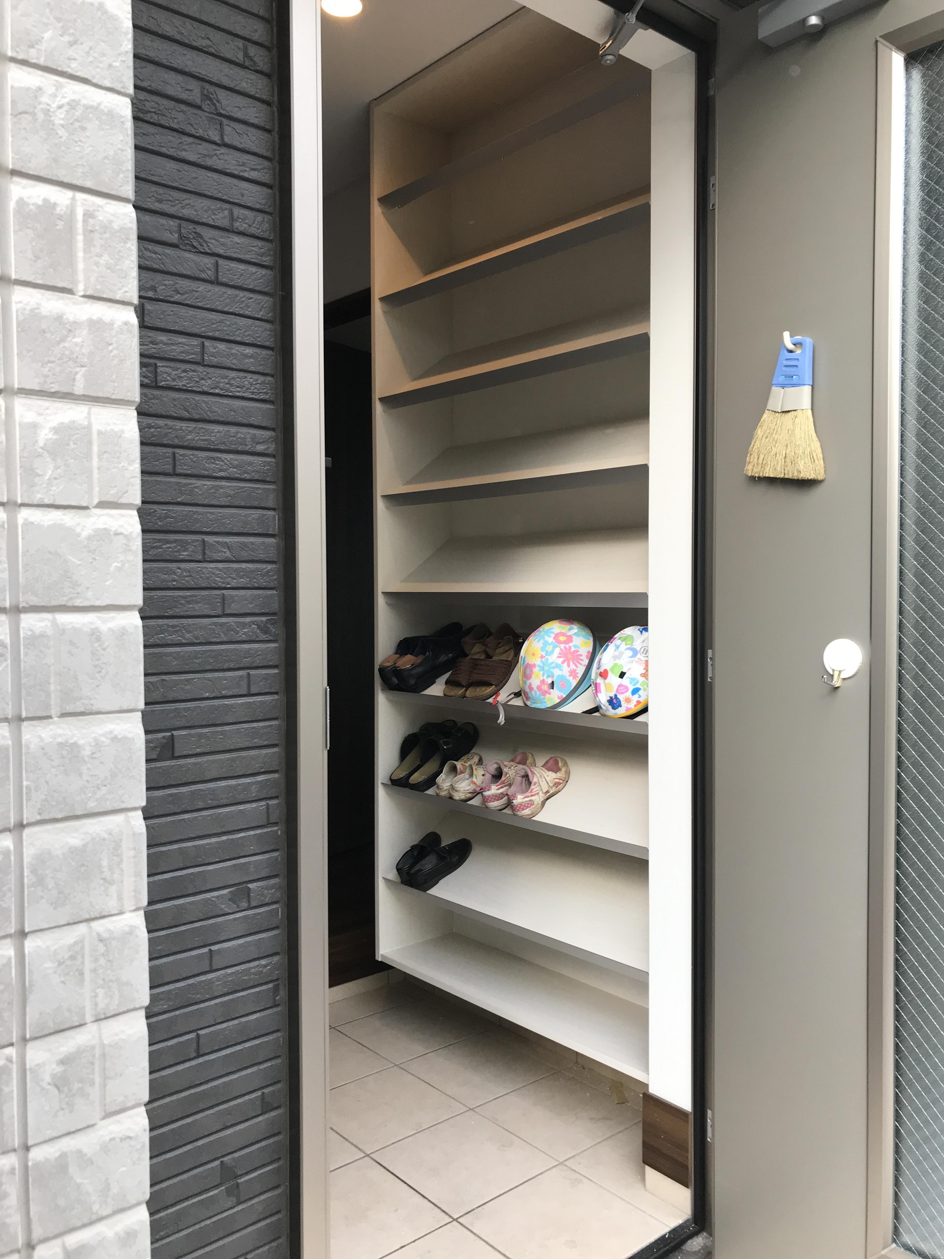 増えていく靴の収納にお困りだったS様。 日々の使いやすさにこだわった玄関収納を新設しました!