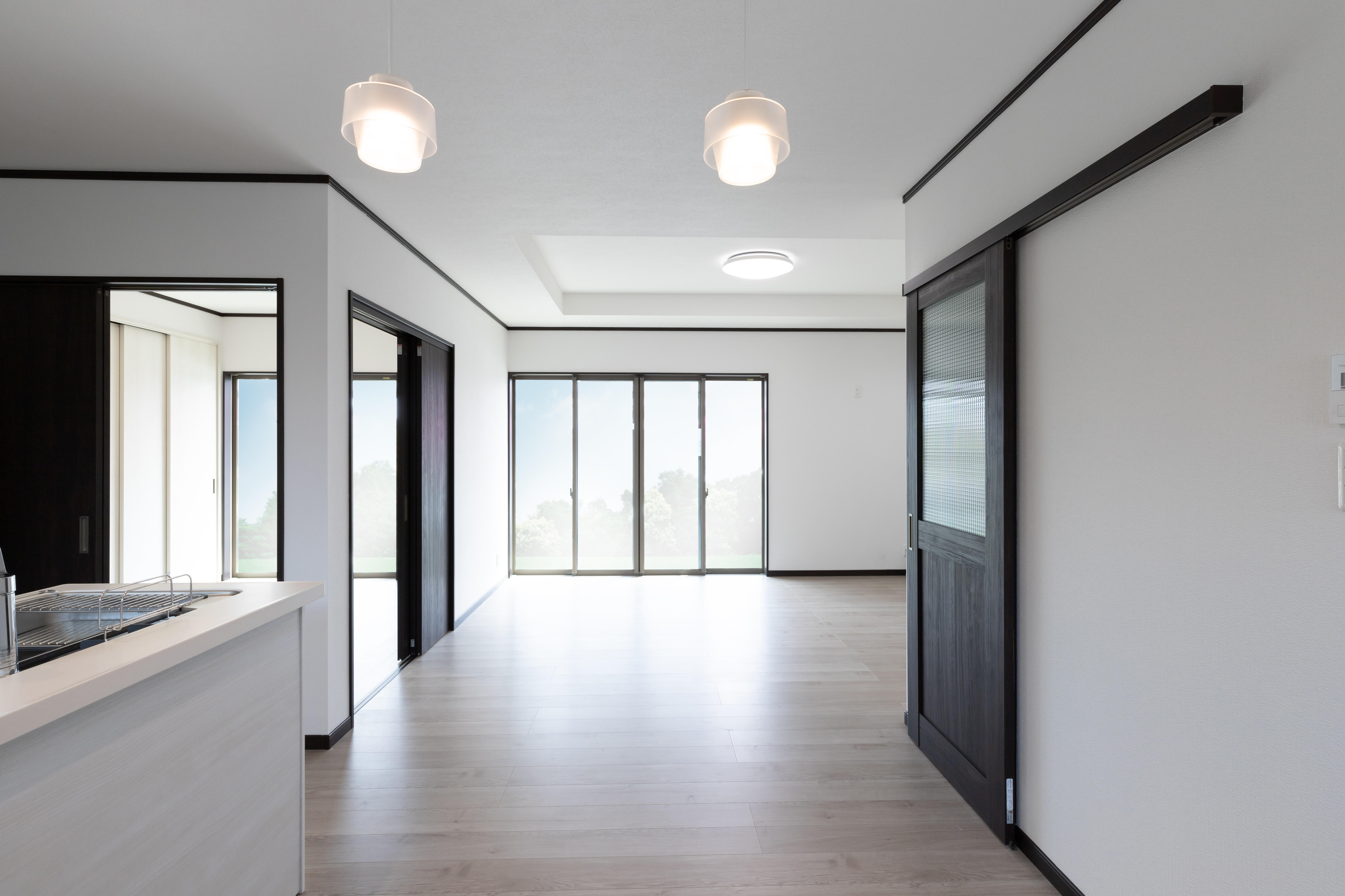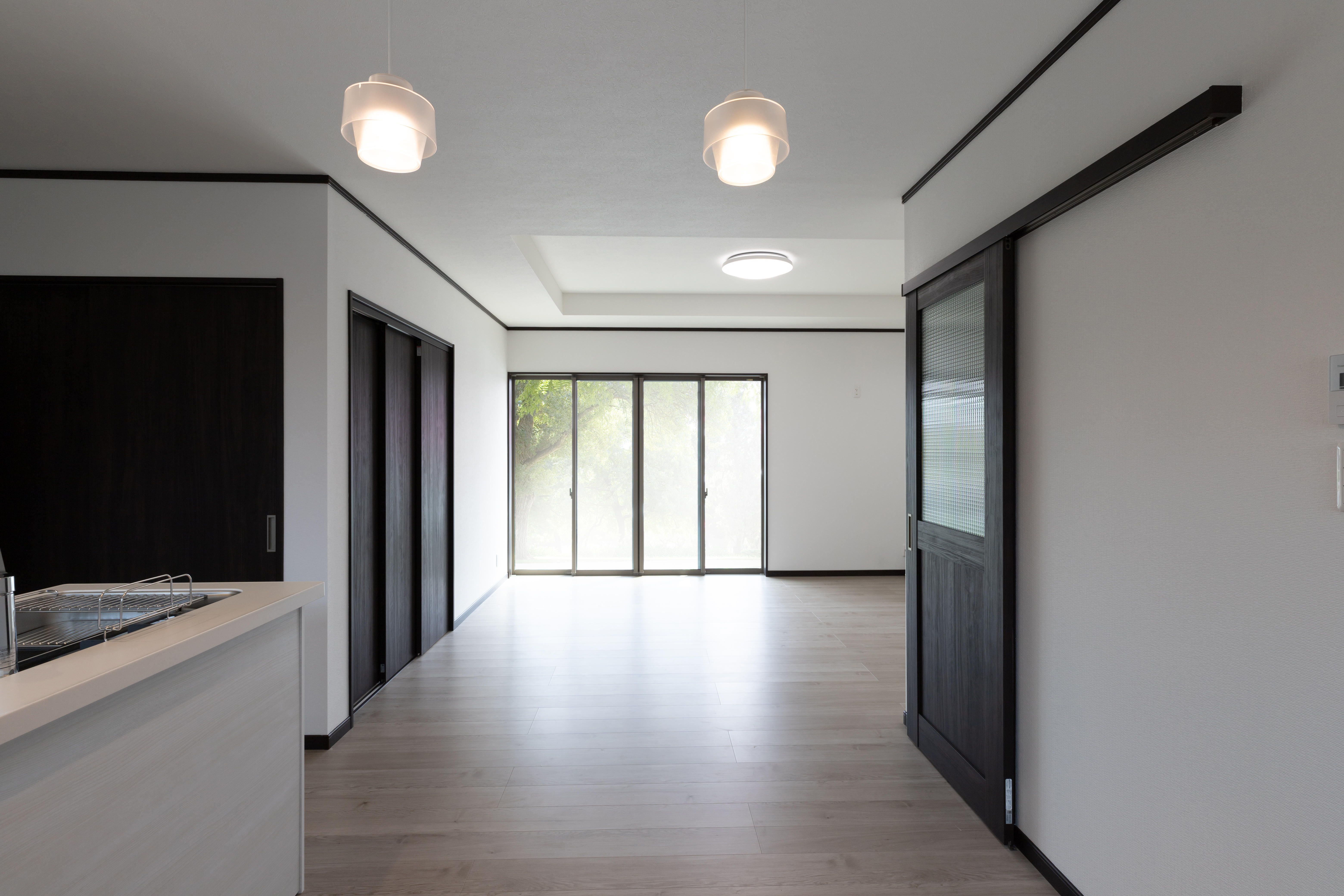 大規模なリフォーム工事を行い、居住空間が新しく生まれ変わりました! 全体を白を基調とし、清潔感溢れる美しい空間に。 キッチンからお部屋の導線も使いやすく、扉を閉めればプライベートを確保でき、開け放すと解放感を感じます。 窓にはインプラスとサーモスⅡを使用。断熱もバッチリです。