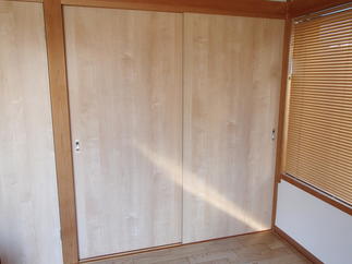 壁クロスも心機一転。 建具・扉もフローリングに合わせてリフォームし、障子部分には、新たにブラインドも取り付けました。 全ての色を合わせることで、統一感が生まれました。