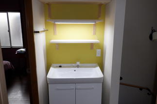 アクセントにレンガ調のクロスを選んで、オシャレなお部屋になりました! 寝室、洋室もそれぞれクロスを変えて、違うイメージのお部屋に。 玄関ドアは「リシェント」。お二階にあった既存の洗面化粧台も新しくしています。 内窓「インプラス」は各お部屋に設置。室内を快適に保ちます。