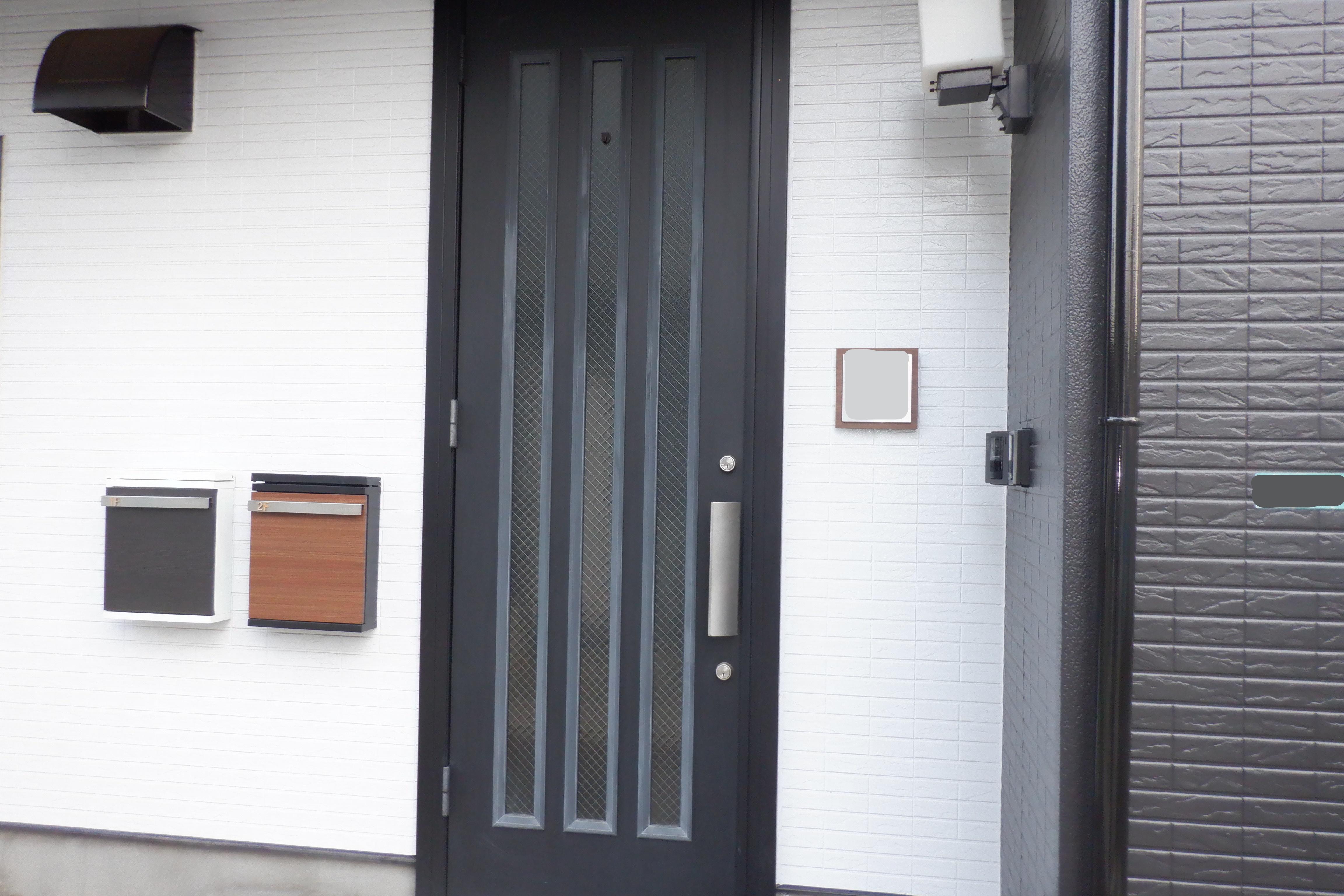2世帯でお住まいのお客様。 玄関ドアを、防犯性の高いものに交換しました。 リモコンキーで開閉も楽に! ポーチのライトも変更し、玄関廊下のクロスも張り替えています。 既存ポストのお色味との相性もバッチリの素敵な玄関になりました。