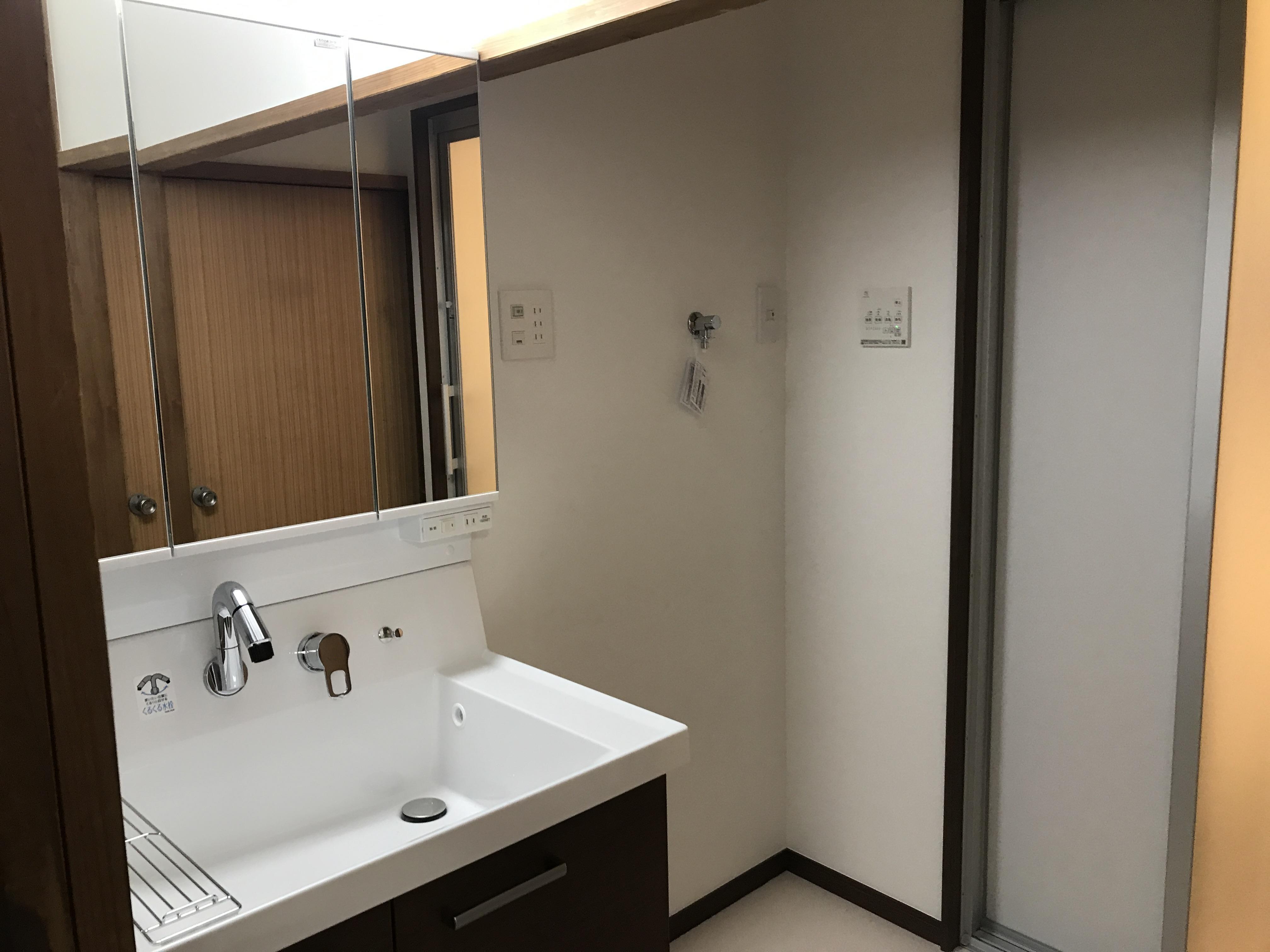 築30年を超えたご自宅の浴室・洗面化粧室の改装工事を行いました。 浴室には【アライズ】。 丸洗いできるカウンターや、キレイサーモフロアでお手入れも簡単に! 既存の壁を取り壊し、広くなった浴槽でゆったりとくつろいでいただけます。 洗面化粧台には【ピアラ】をチョイス。 ひろびろボウルとくるくる水栓で、圧倒的に使いやすくなりました。