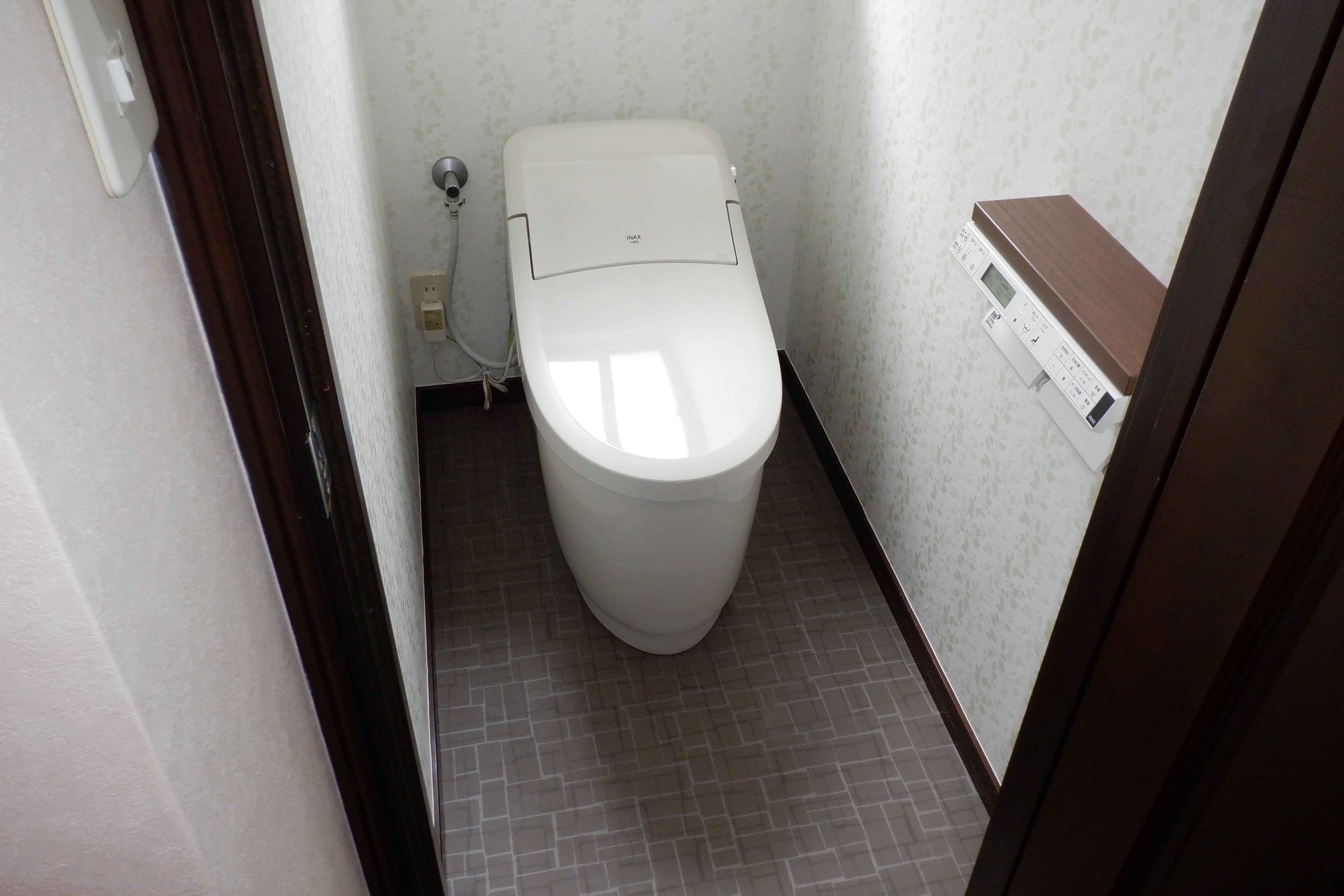1階・2階のトイレの改装工事を行いました。 1階には【サティスG8】。 タンクをなくしたデザインで、見た目にもスッキリ。 お手入れのしやすさだけでなく、座り心地にもこだわっています。 2階には【プレアスLS】 こちらもタンクレスで、空間が広くなりました。 こだわりのクロスで、毎日使うトイレが気持ちよく過ごせる空間になりました。