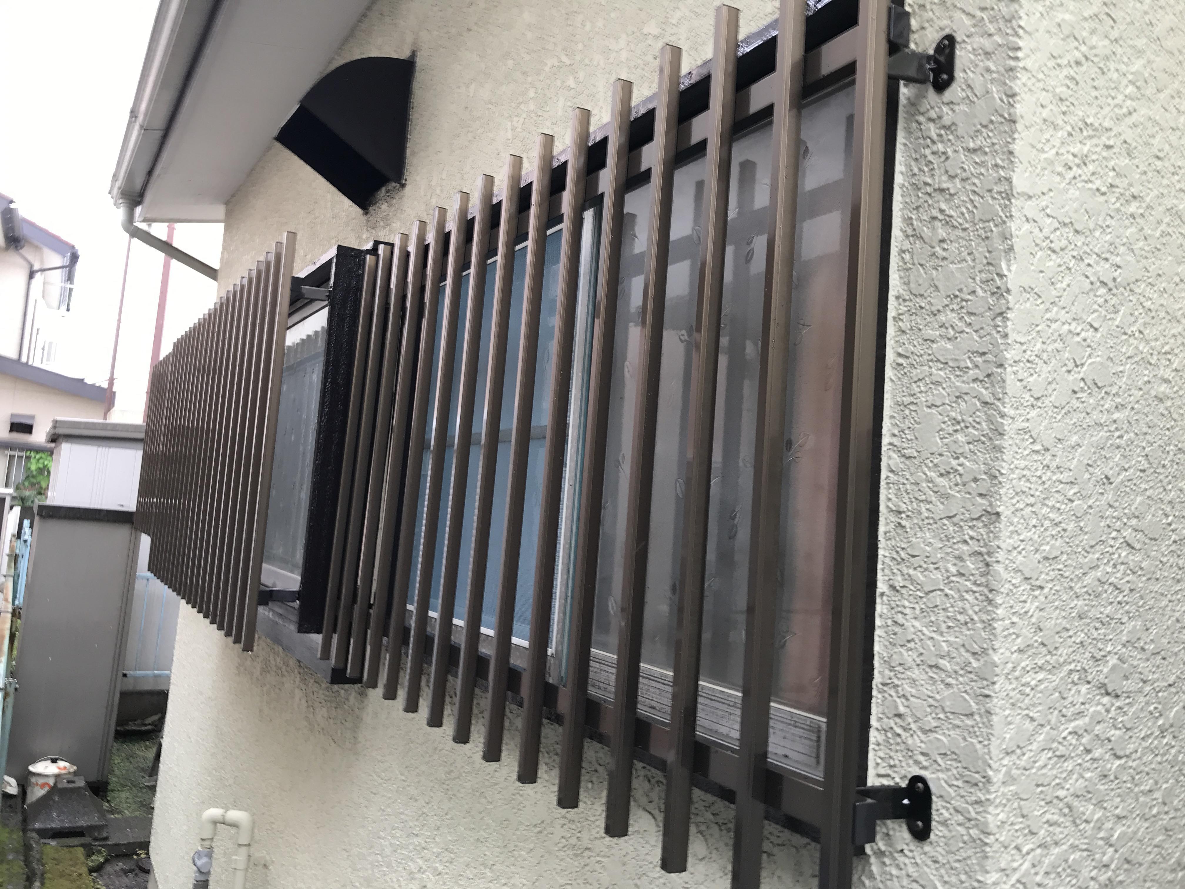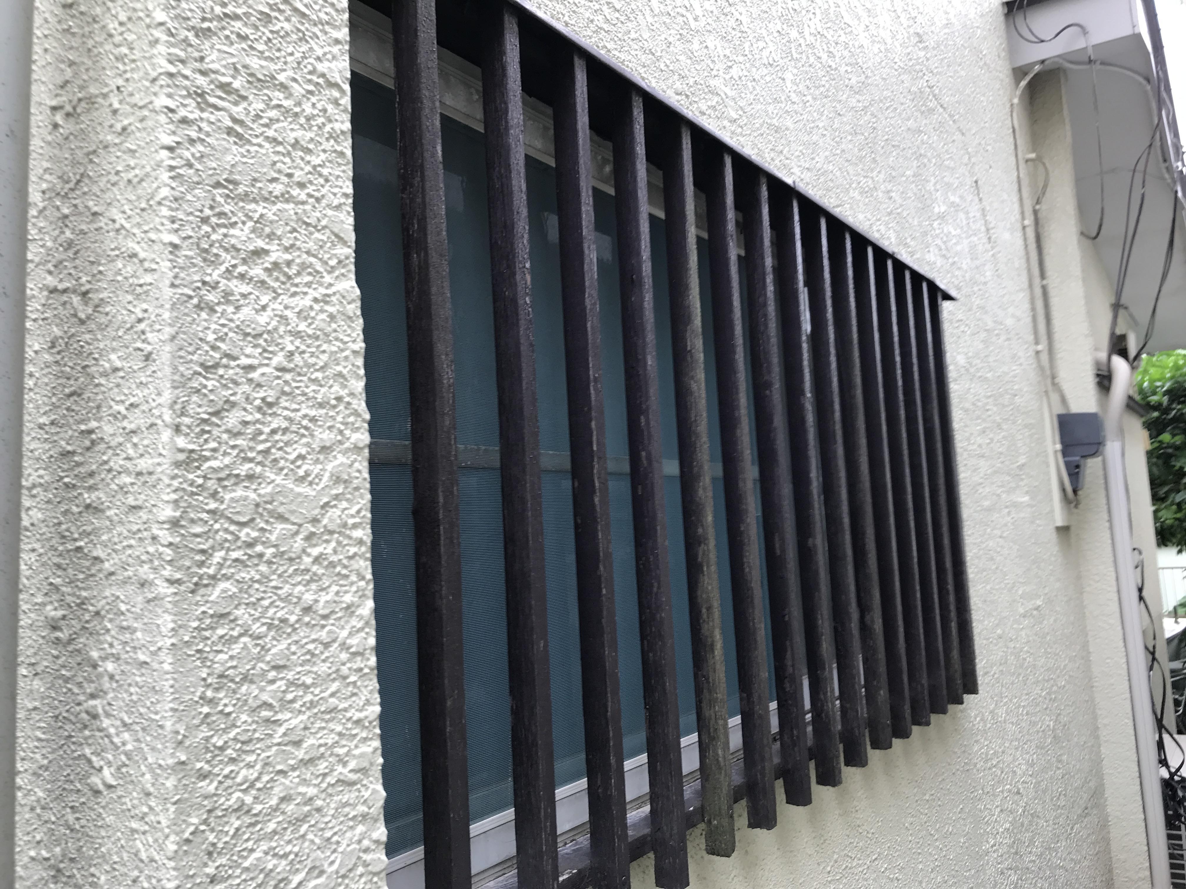 経年劣化のある面格子の交換工事、下屋の塗装工事を行いました。 既存の格子とイメージが変わらぬよう、オータムブラウンをチョイス。