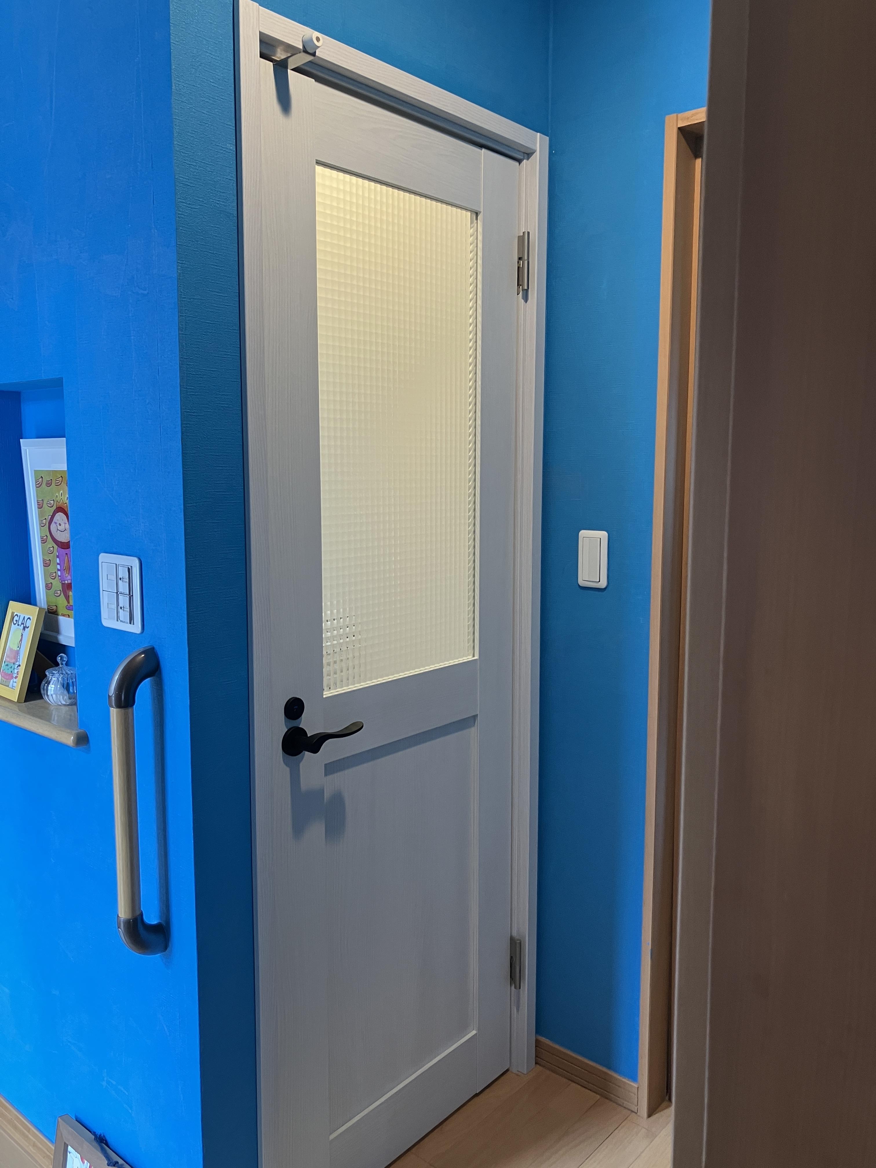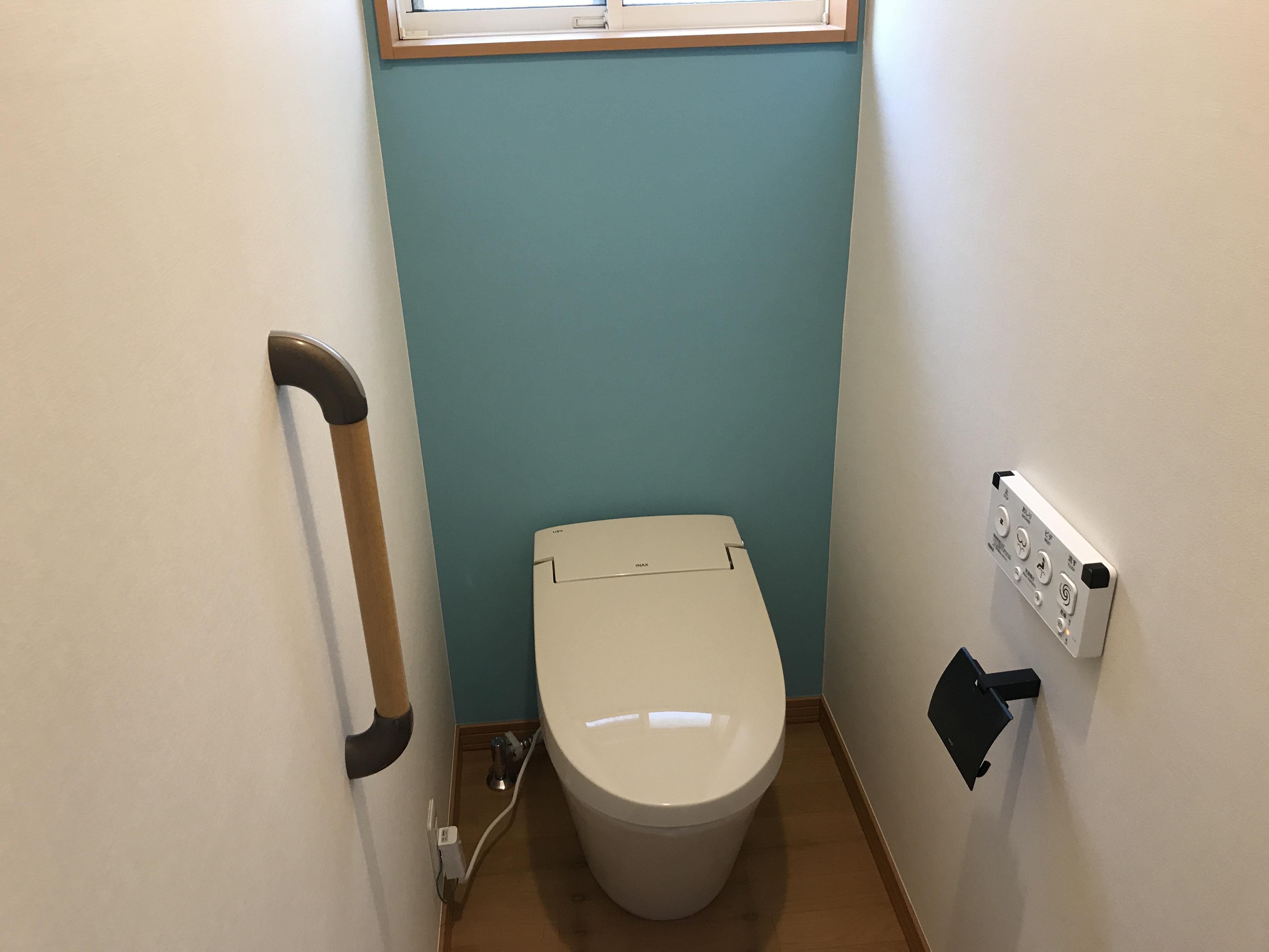 以前にも弊社で建具交換工事を行ったお客様。 今回はトイレ改装のご相談をいただきました。 磨きぬいたシンプルでコンパクトなデザインの【LIXIL・サティスS】をチョイス。 手洗いがなくなったことで、トイレ空間が広くなりました。 張り替えたクロスの鮮やかなブルーが映えます! 紙巻き器に選んだアイアンブラックのお色もいいアクセントに。