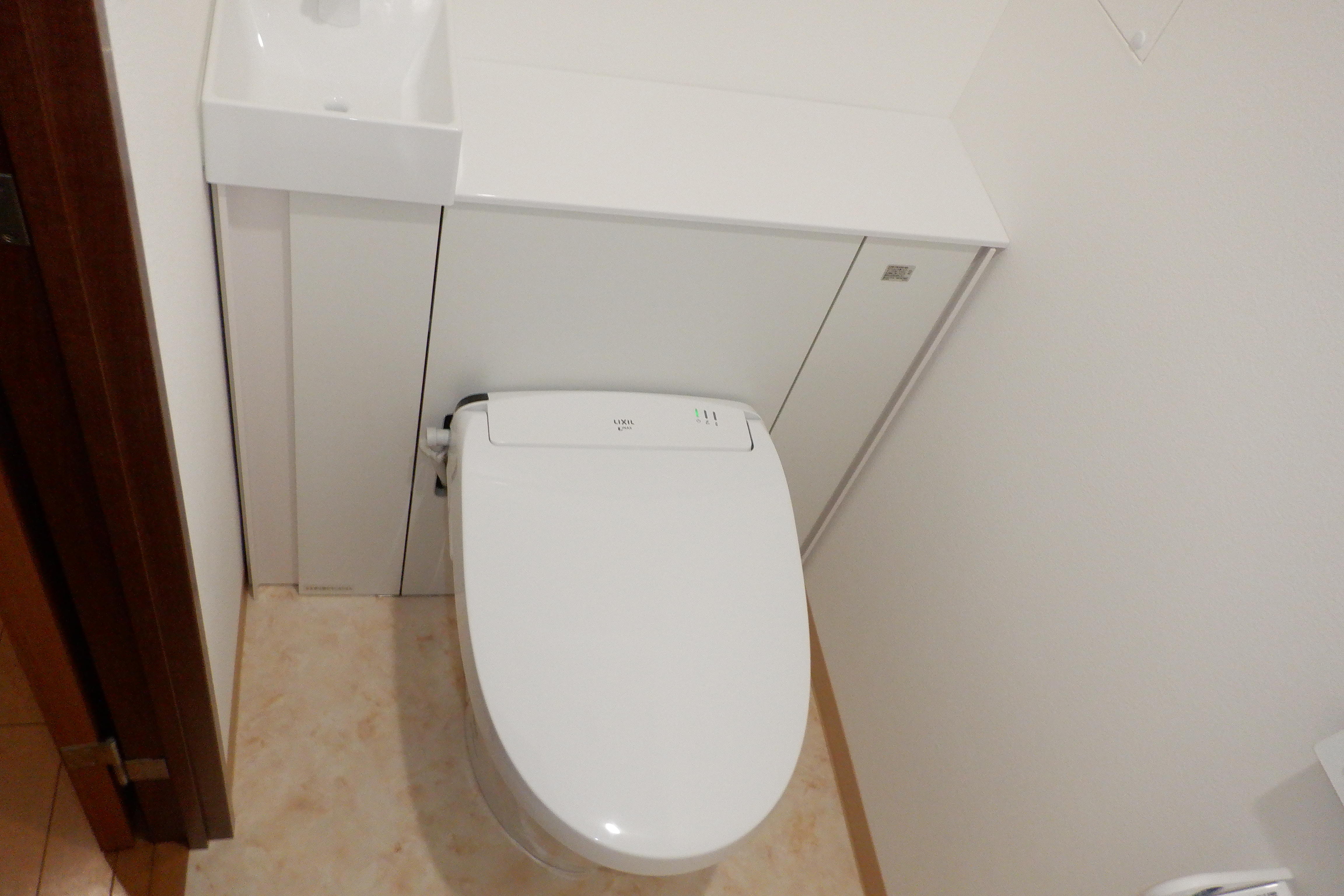 清掃性も向上させたいとのことで、キャビネット付きトイレ【LIXIL・リフォレ】をお選びいただきました。