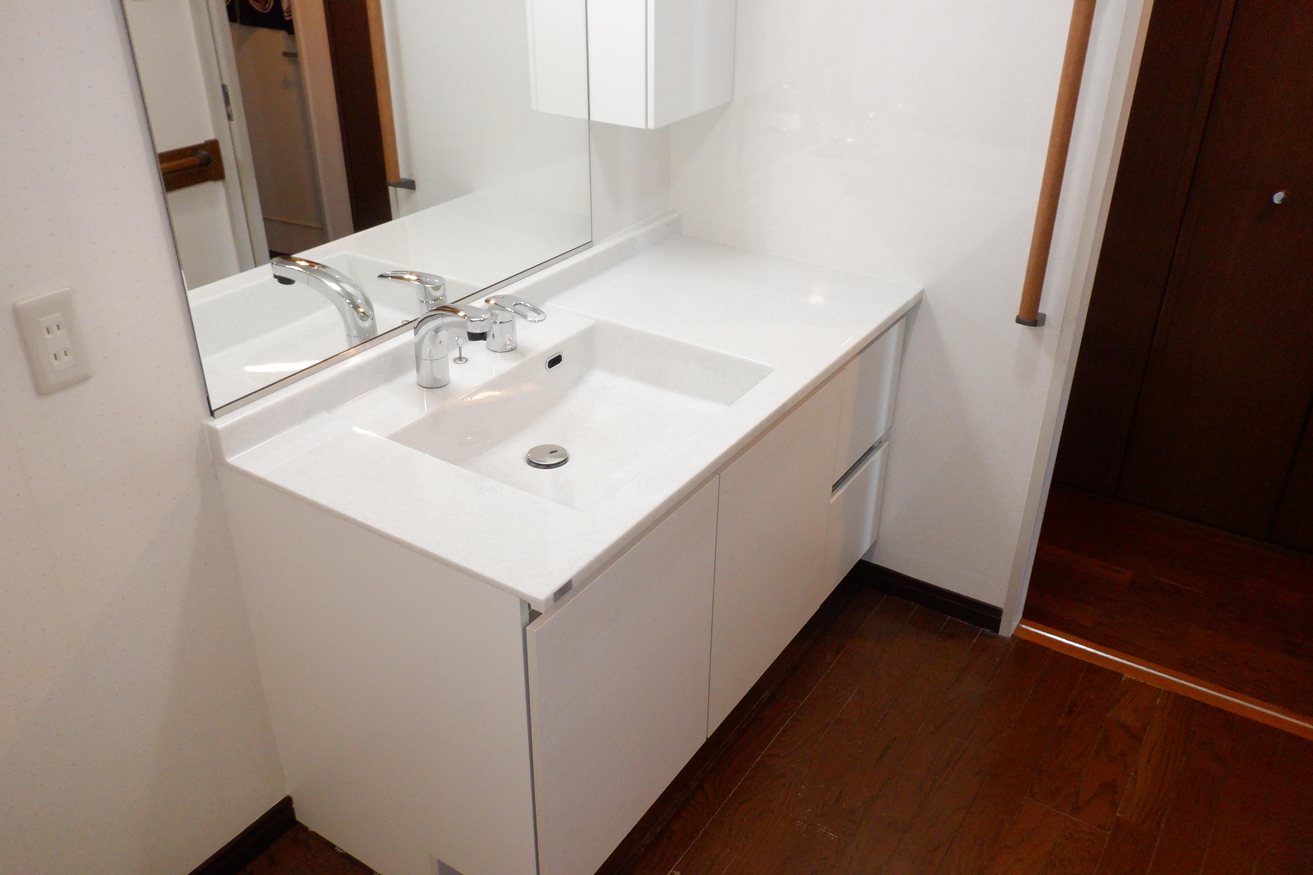 できるだけ現状の使い方を変えたくないとのご相談で、洗面化粧台交換工事をさせていただきました。