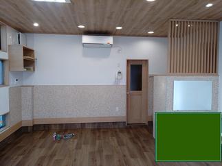美容室の改装工事をさせていただきました。 木目を基調とした、明るくあたたかい空間に。 窓枠には【LIXIL・ラシッサ】を使用しています。